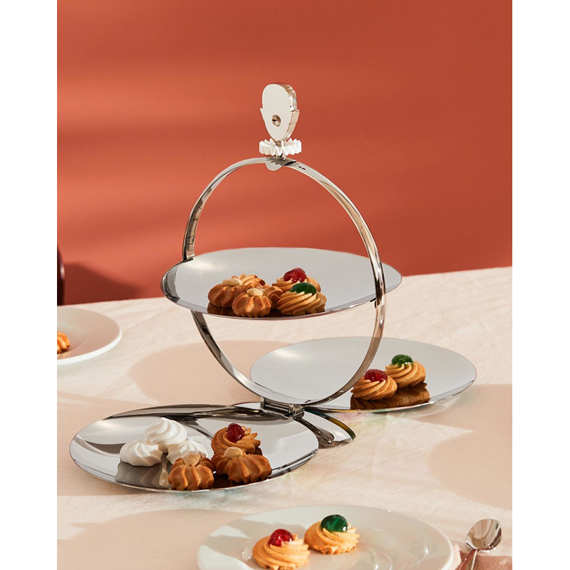 Le plateau pliable Fatman, créé par Marcel Wanders et édité par Alessi, est un objet élégant, fonctionnel et ludique. Le designer a dirigé son attention sur la décoration en réalisant un habit coloré afin de vêtir le produit. Fermé, le plateau pliable Fatman est une sculpture de table et se transforme en plateau à étages lorsqu’il est ouvert. Ainsi, ce dernier n’a pas qu’une fonction pratique, il présente aussi une fonction esthétique. La décoration colorée, associée à la forme ronde, tend à mettre l’accent sur la perception formelle de l’objet. Fatman, comme son nom l'indique, présente les traits d’un homme au corps robuste, habillé comme un clown.