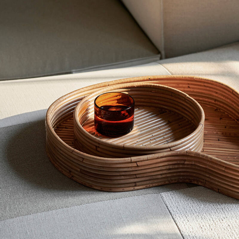 Les plateaux Isola Ferm Living se caractérisent par leurs formes douces et organiques. Réalisé en rotin naturel teintée, le set Isola est composé de deux plateaux de formes et de tailles différentes, dotés de bords hauts qui permettent de transporter sans encombre assiettes, tasses ou autres objets divers d'une pièce à l'autre. Les plateaux Isola sont parfaits pour servir le petit-déjeuner au lit, distribuer des rafraichissements dans le jardin ou simplement comme ensemble de plateaux décoratifs, pour exposer vos objets préférés dans toute la maison.