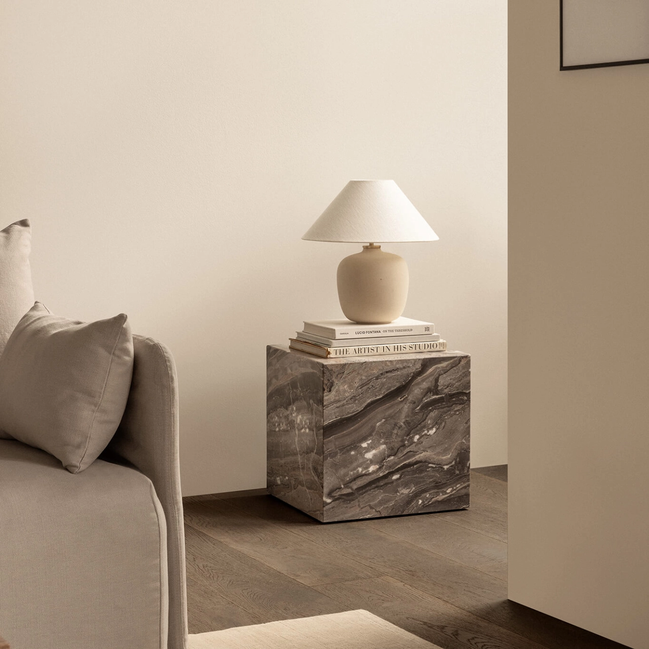 La table d’appoint PLINTH CUBIC Marbre Grey Galaxy incarne une vision radicale et architecturale du mobilier contemporain, où la pureté d’un volume cubique révèle toute la profondeur expressive de la pierre. Sa géométrie essentielle met en lumière le marbre Grey Galaxy, dont les veinages dynamiques et les nuances intenses composent une surface vibrante et sophistiquée, transformant chaque pièce en élément unique. Fidèle à l’approche sculpturale d’Audo Copenhagen, elle s’impose comme un monolithe élégant, à la frontière entre fonction et œuvre d’art. En bout de canapé dans un salon résidentiel haut de gamme, en table d’appoint dans un espace lounge ou comme socle dans un hall d’hôtel ou un projet tertiaire à forte identité, la PLINTH CUBIC structure l’espace avec autorité. Son format compact accueille livres, objets décoratifs ou pièces sculpturales tout en conservant une grande pureté formelle. Le contraste entre la densité minérale du Grey Galaxy et la simplicité rigoureuse du cube crée une tension subtile entre monumentalité et minimalisme, dialoguant harmonieusement avec des textiles profonds, des bois sombres ou des matériaux métalliques. Son design repose sur un équilibre précis entre masse et proportion, traduisant une conception durable où esthétique et usage se rejoignent avec évidence. La table d’appoint PLINTH CUBIC Marbre Grey Galaxy se distingue par la noblesse et l’intensité de sa pierre naturelle, par son écriture cubique à forte identité, par sa capacité à structurer des projets résidentiels ou contract exigeants, et par son intemporalité qui en fait une pièce manifeste au cœur d’intérieurs contemporains sophistiqués.