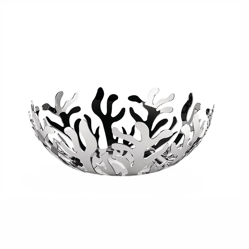 Mediterraneo est une collection d'accessoires de la table dessinée par la créatrice de bijoux Emma Silvestris et éditée par Alessi. Cette série se distingue par sa forme de corail qui est déclinée sur toutes les pièces de la collection. L'artiste transpose dans le métal cette précieuse matière organique. La corbeille Mediterraneo consiste en une coque en acier découpé, disponible en version inox ou colorée à la résine époxyde. Remplie de fruits, de vos objets favoris ou même vide, la corbeille Mediterraneo est un très bel objet qui s'accorde avec tous les styles d'intérieurs.