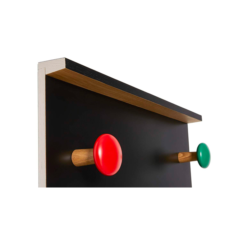 porte-manteau LC17 est constituée d'éléments en chêne massif colorés dans des teintes primaires. Ces éléments sont disposés à différentes hauteurs suivant le système de calcul Modulor pensé par