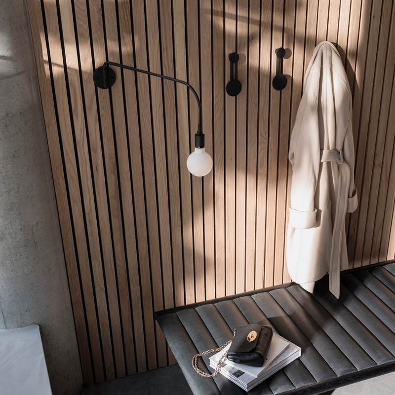 Le portemanteau Afteroom small est un support tout simple pour accueillir manteaux, vêtements et chapeaux. Le duo de designers Afteroom, studio basé à Stockholm, est animé par une passion pour les proportions, les matériaux et les différentes cultures. On retrouve dans chacun de leurs objets et particulièrement dans ce portemanteau, la même simplicité inspirée du design scandinave. Edité par Menu, Afteroom est très facile à monter au mur, les vis se dissimulant à l'intérieur du cadre, pour accentuer encore son esthétique sobre et épurée.