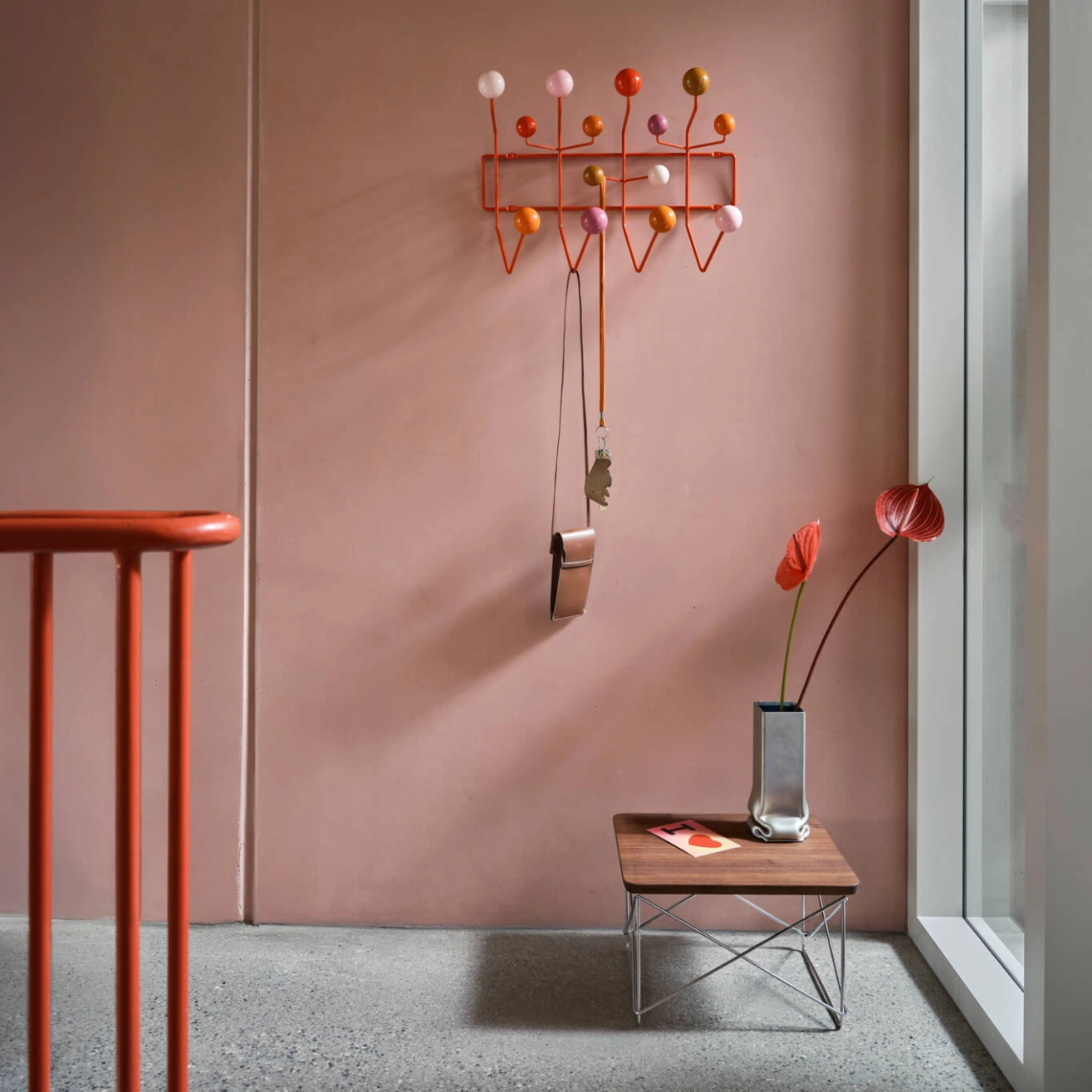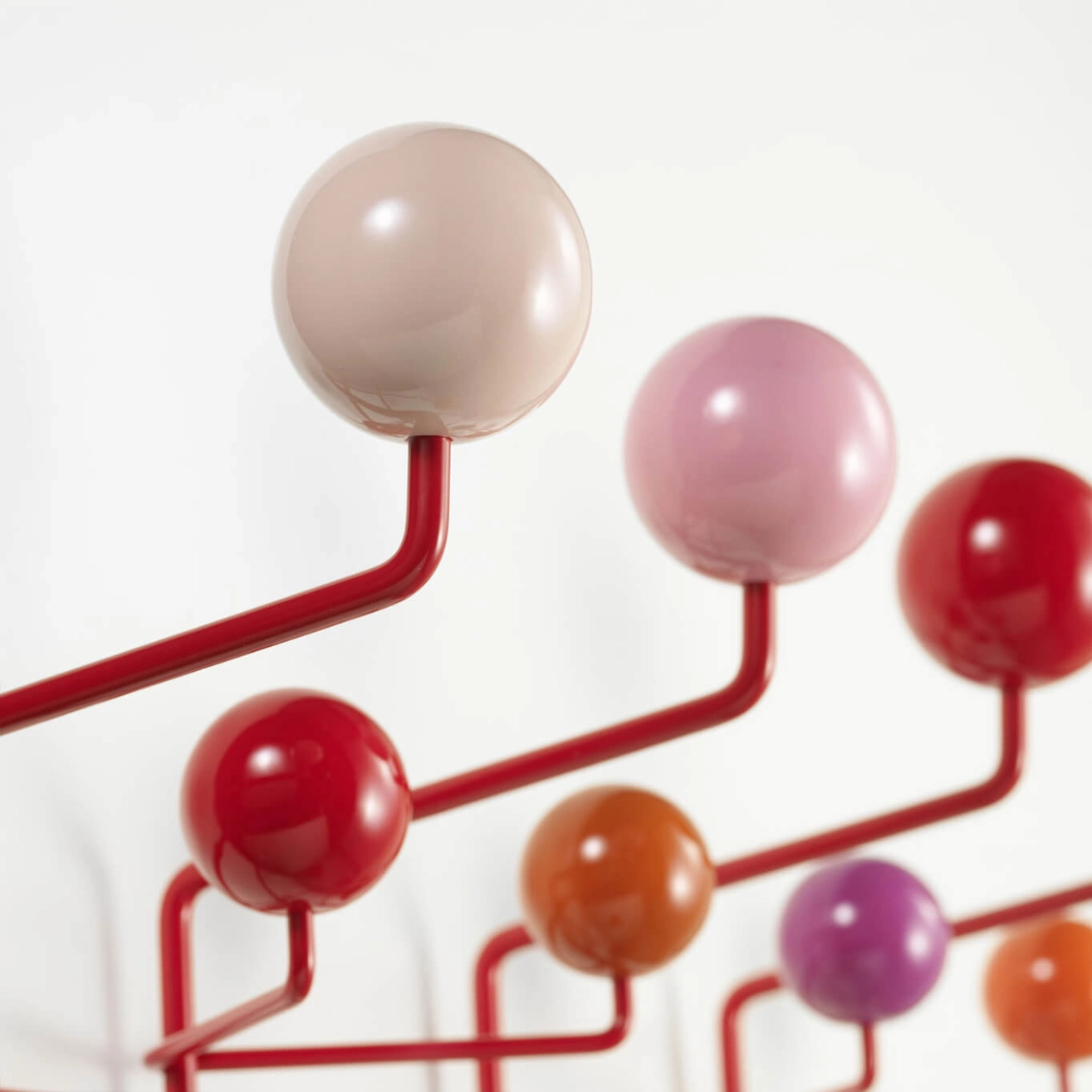 Le duo Charles et Ray Eames crée en 1953 un portemanteau fantaisiste pour Vitra. Telle une sculpture insolite et pleine de gaieté, Hang it all est un portemanteau qui permet, grâce à ses boules en bois aux couleurs vives, de suspendre chapeaux, écharpes, vestes et manteaux. Il remplace les banales patères et incite les enfants à y suspendre « toutes leurs affaires », comme son nom l'indique, aussi bien leurs poupées que leurs patins à roulettes ! Le portemanteau Hang it all peut être étendu à l'infini et constitue une alternative ludique aux crochets monotones, aussi bien dans la chambre des enfants que dans l'entrée de la maison. Hang it all est un accessoire de la vie quotidienne plein de fantaisie, exposé au Vitra Design Museum. Plus qu'un must-have aujourd'hui, il égaye votre intérieur de façon originale, et constitue une idée de cadeau qui allie l'utile à l'agréable.