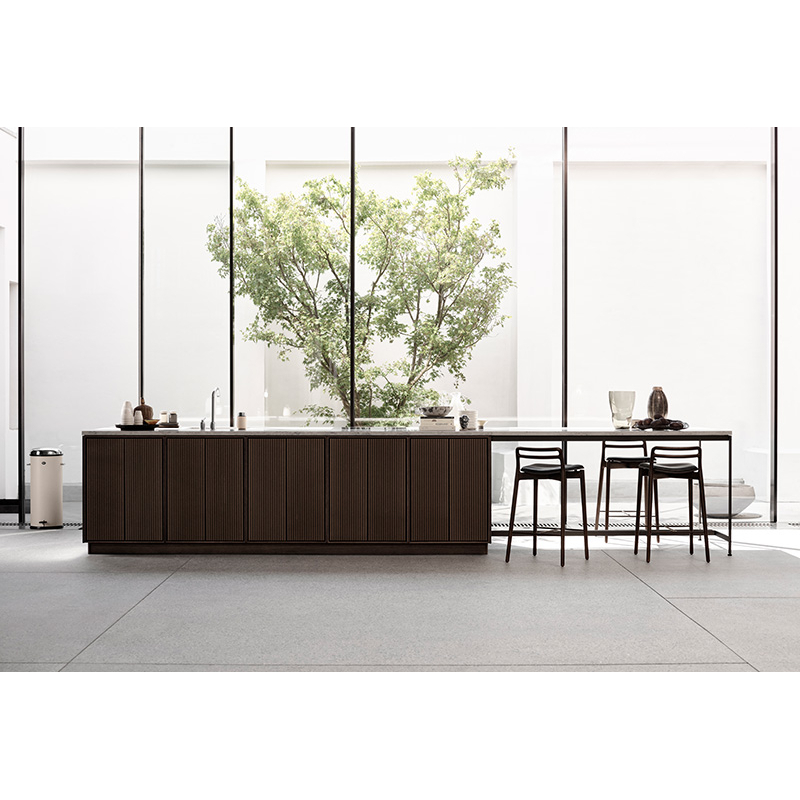 La poubelle à pédale Vipp17 est le plus grand modèle de poubelle à pédale Vipp, idéal pour la cuisine. Cette poubelle à pédale est équipée d'un bac intérieur amovible, d'un couvercle qui garantit une fermeture hermétique et d'un mécanisme d'absorption des chocs qui assure une fermeture en douceur du couvercle. Un anneau en caoutchouc à la base protège les sols. La poubelle à pédale Vipp se décline en 5 formats et 4 couleurs différentes : acier peint en noir, blanc, beige et acier inoxydable.