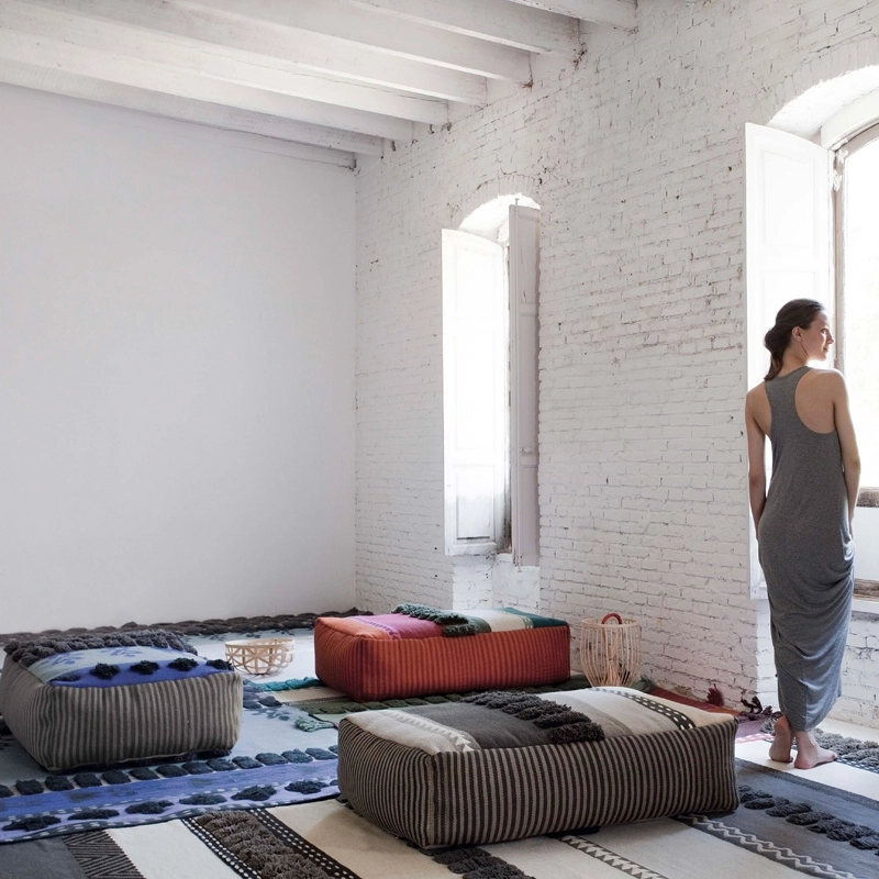 Glaoui est une collection de tapis et de poufs dessinée par Sandra Figurerola pour Gandia Blasco. Les traditionnels tapis marocains sont combinés avec des textures innovantes qui créent du relief et évoquent ainsi les chaines montagneuses de l'Atlas. Cette collection permet de créer un espace à part entière et modulable selon les envies, pour s'adapter à vos besoins.