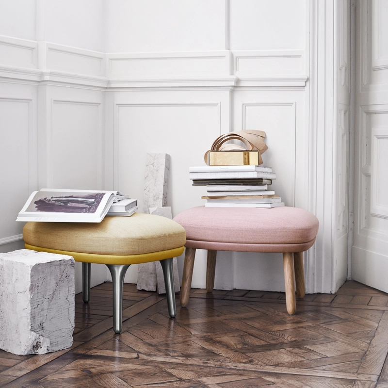Dessiné par Jaime Hayon pour Fritz Hansen, ce repose-pied est conçu pour accompagner le fauteuil de la même collection. Ce fauteuil invite à la détente, son ergonomie permet de changer de positions, de lire le journal facilement, et de se créer une nouvelle zone de confort rien que pour soi. Le petit pouf Ro vient compléter parfaitement le confort du fauteuil. En danois, « Ro » veut dire tranquillité. Ce nom a été choisi parce qu'il capture l'essence de la collection en seulement deux lettres et reflète ainsi l'approche et le concept nordique de la beauté simple et raffinée. Comme le fauteuil, le repose-pied est revêtu de tissu Kvadrat dans des combinaisons choisies spécialement par le designer, et crée ainsi un contraste de textures et de couleurs entre la coque et les coussins d'assise.
