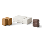 poufs composés d'éléments librement assemblables, adaptés à toutes les pièces de la maison. Leur géométrie élémentaire cache une multitude de fonctions, exprimant dynamisme et fraîcheur. Nés de la recherche expérimentale de la jeune designer, les