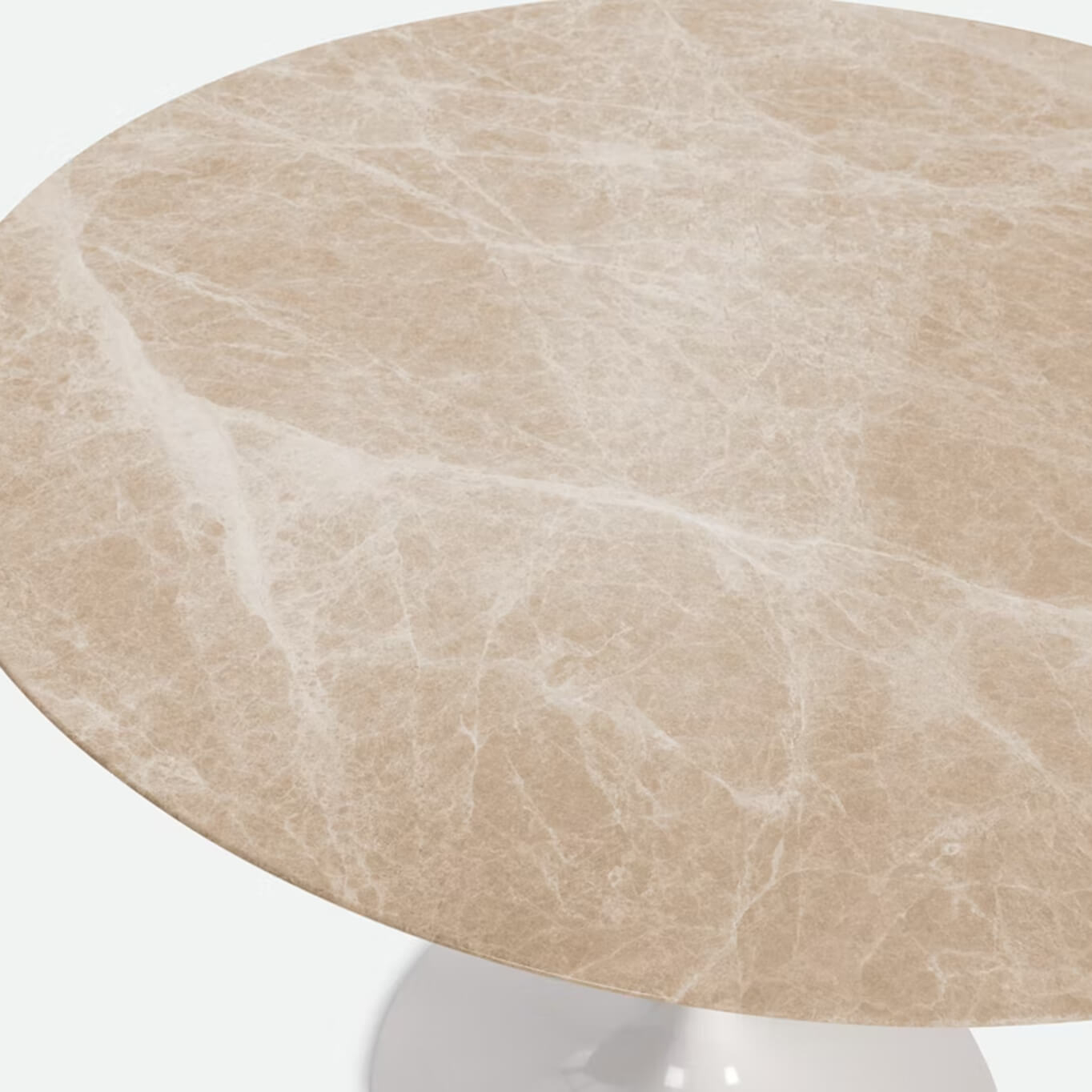 Les tables d'Eero Saarinen, conçues dans les années 50, font partie des meubles cultes de l'histoire du design. Intemporelles, copiées mais jamais égalées, elles allient sobriété et élégance et trouvent leur place dans tout type d'intérieur. Le plateau de la table Saarinen est caractérisé par un chant biseauté qui accentue sa légèreté, quelque soit sa dimension. Le guéridon est proposé avec un plateau stratifié ou en marbre.