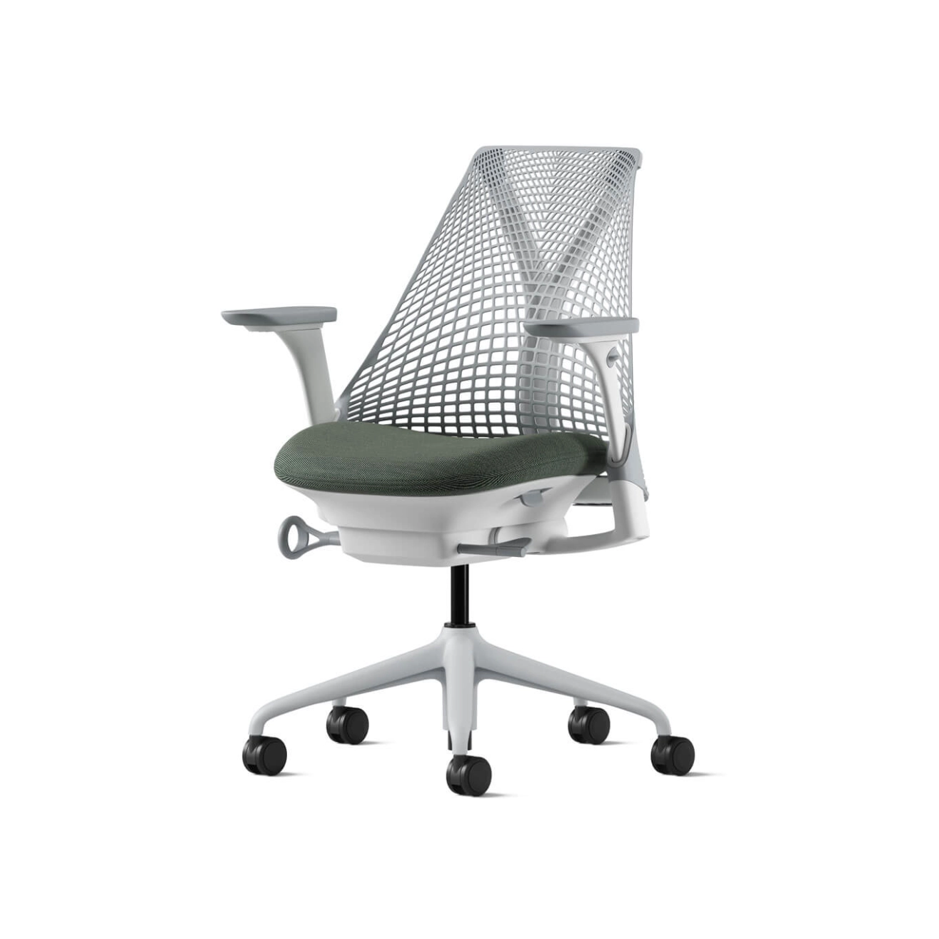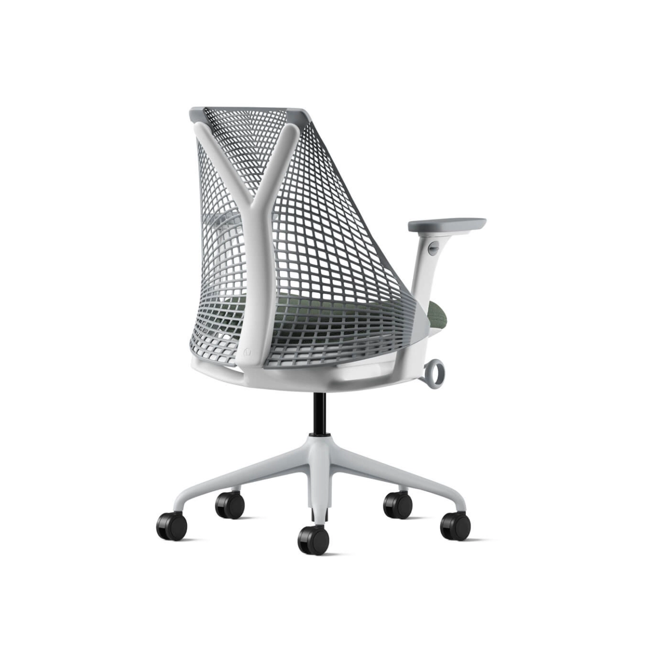 Conçu par Yves Béhar et édité par Herman Miller, le fauteuil de bureau Sayl incarne une vision innovante et ergonomique de l’assise, où design audacieux, mobilité et confort se rencontrent. Doté d’une suspension mi-dos, le Sayl accompagne naturellement les mouvements du corps tout en offrant un maintien dynamique et souple. Il est équipé d’une hauteur prolongée, d’un limiteur d’inclinaison et d’une assise réglable, favorisant une posture active et un confort optimal quelle que soit la position adoptée. Les accoudoirs entièrement réglables assurent un soutien précis et personnalisé, idéal pour un usage intensif ou partagé. Le fauteuil repose sur des roulettes de 65 mm, adaptées aux sols durs comme aux moquettes, offrant une mobilité fluide et silencieuse. Côté finitions, le cadre, la base et la suspension s’harmonisent élégamment avec le tissu Aquarius 7A et les accoudoirs, créant une esthétique contemporaine, sobre et raffinée. Idéal pour les environnements de travail exigeants, le fauteuil Sayl séduit par son ergonomie intuitive, son maintien précis et son design pensé pour le mouvement et la performance au quotidien.