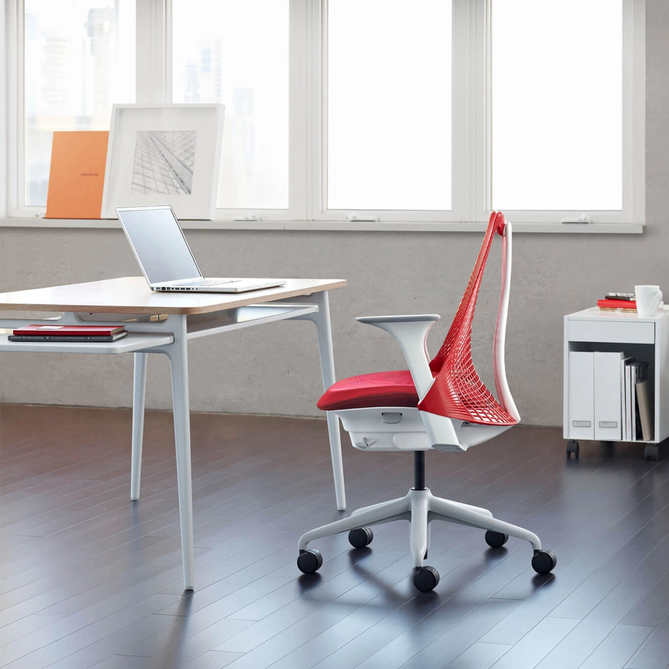 Conçu par Yves Béhar et édité par Herman Miller, le fauteuil de bureau Sayl incarne une vision innovante et ergonomique de l’assise, où design audacieux, mobilité et confort se rencontrent. Doté d’une suspension mi-dos, le Sayl accompagne naturellement les mouvements du corps tout en offrant un maintien dynamique et souple. Il est équipé d’une hauteur prolongée, d’un limiteur d’inclinaison et d’une assise réglable, favorisant une posture active et un confort optimal quelle que soit la position adoptée. Les accoudoirs entièrement réglables assurent un soutien précis et personnalisé, idéal pour un usage intensif ou partagé. Le fauteuil repose sur des roulettes de 65 mm, adaptées aux sols durs comme aux moquettes, offrant une mobilité fluide et silencieuse. Côté finitions, le cadre, la base et la suspension s’harmonisent élégamment avec le tissu Aquarius 7A et les accoudoirs, créant une esthétique contemporaine, sobre et raffinée. Idéal pour les environnements de travail exigeants, le fauteuil Sayl séduit par son ergonomie intuitive, son maintien précis et son design pensé pour le mouvement et la performance au quotidien.