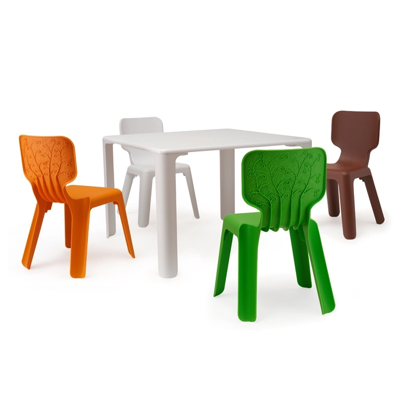 Empilable jusqu'à quatre pièce, Alma est une petite chaise pour enfants qui se décline en plusieurs couleurs. Dessinée par Javier Mariscal pour Magis, elle est réalisée en polypropylène avec fibre de verre. Alma est à  la fois robuste et légère, et se déplace facilement et peut aussi bien être utilisée à l'intérieur qu'à l'extérieur. Le dos est décoré de motifs organiques et d'oiseaux laissant place à l'imagination d'un monde féérique pour apporter douceur et poésie dans la chambre de votre enfant. Alma s'accorde parfaitement avec la petite table Linus.