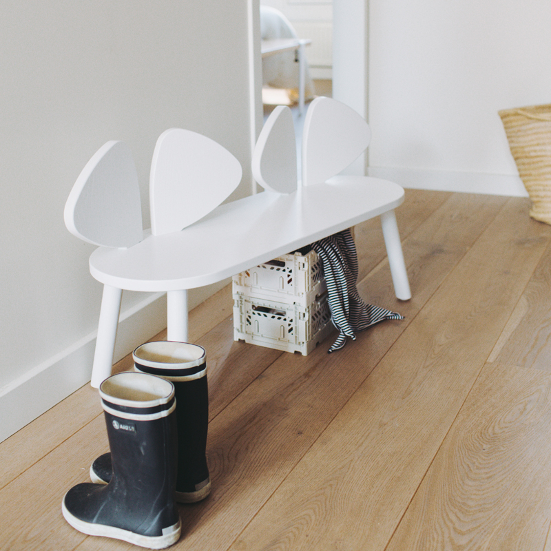 Imaginé par Nofred, ce banc élégant en bois est conçu pour les enfants de 2 à 5 ans. Le banc Mouse est parfait dans l’entrée pour se préparer à sortir ou enlever ses chaussures en rentrant. Il trouve également sa place dans la chambre d’enfants ou dans le salon et peut être complété par la table de même collection, pour jouer ou dessiner à deux. Avec son dossier en formes d’oreilles, Mouse séduira les enfants, tout en plaisant aussi aux parents, grâce à un design épuré et une réalisation de qualité dans un matériau durable.