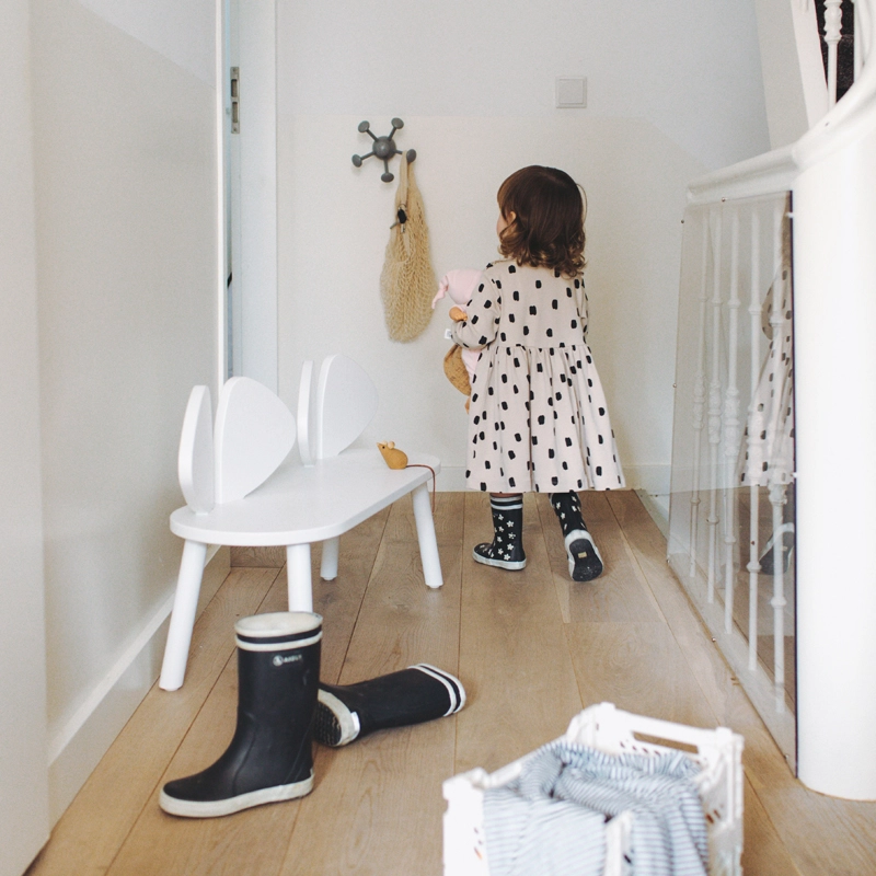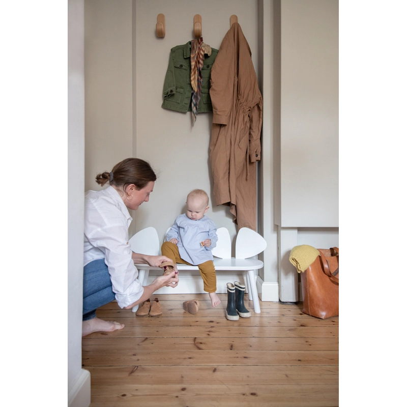 Imaginé par Nofred, ce banc élégant en bois est conçu pour les enfants de 2 à 5 ans. Le banc Mouse est parfait dans l’entrée pour se préparer à sortir ou enlever ses chaussures en rentrant. Il trouve également sa place dans la chambre d’enfants ou dans le salon et peut être complété par la table de même collection, pour jouer ou dessiner à deux. Avec son dossier en formes d’oreilles, Mouse séduira les enfants, tout en plaisant aussi aux parents, grâce à un design épuré et une réalisation de qualité dans un matériau durable.