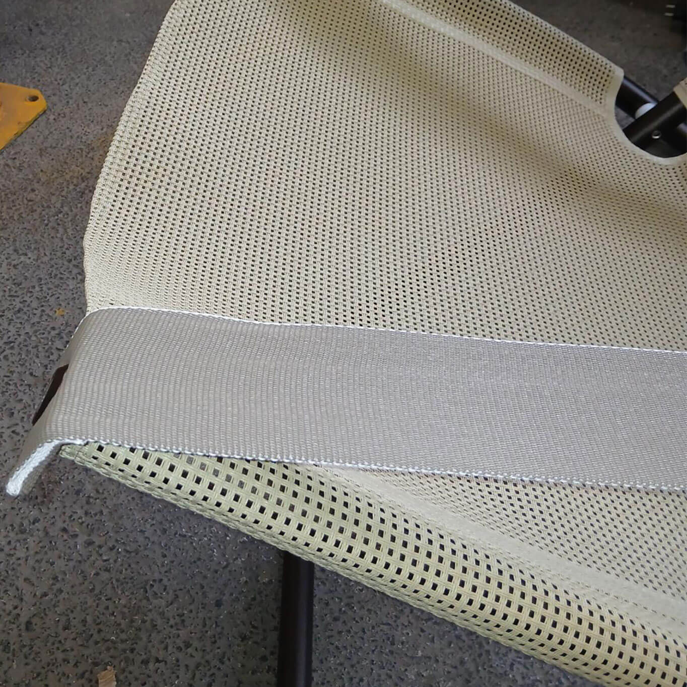 Toile d'assise distendue et finition de la coupe avant imparfaite
