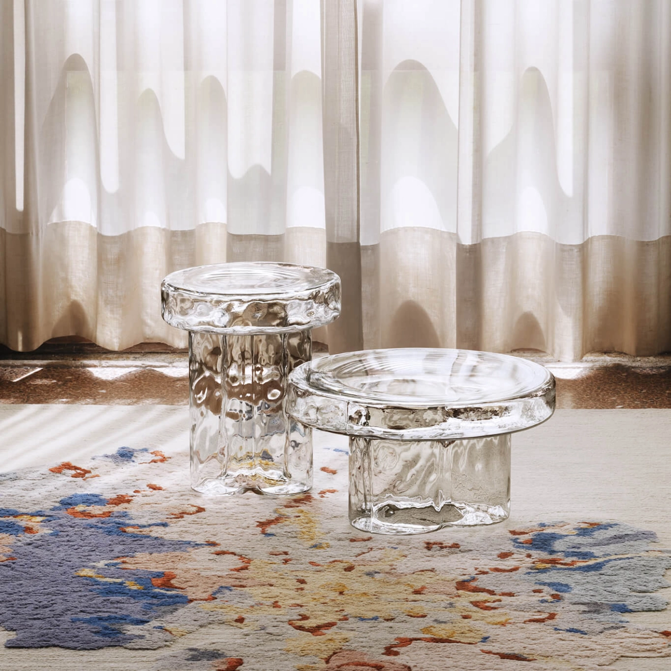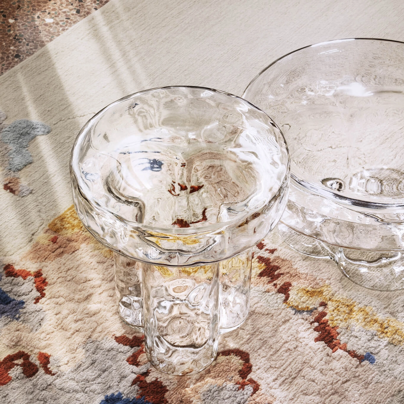 Avec Soda Iced, la célèbre table de Miniforms conserve son design iconique, mais avec une finition très visuelle. La surface extérieure reste lisse au toucher, tandis que la texture intérieure scintille, mise en valeur par la nouvelle surface transparente. Chaque table au design massif provient d’un seul volume de verre de Murano soufflé et démoulé par des maitres-verriers. Soda possède un pied unique constitué de 3 pétales qui soulèvent son plateau. Toute la matière de la table Soda résonne : sa transparence et son enveloppe martelée fragmentent et jouent avec la lumière, en lui donnant une esthétique primitive. L’allure élégante de Soda convient parfaitement à la décoration d’un salon, de préférence dans un coin éclairé de manière à le laisser sublimer la pièce par des reflets colorés. La collection Soda est disponible dans les versions table d’appoint et table basse.