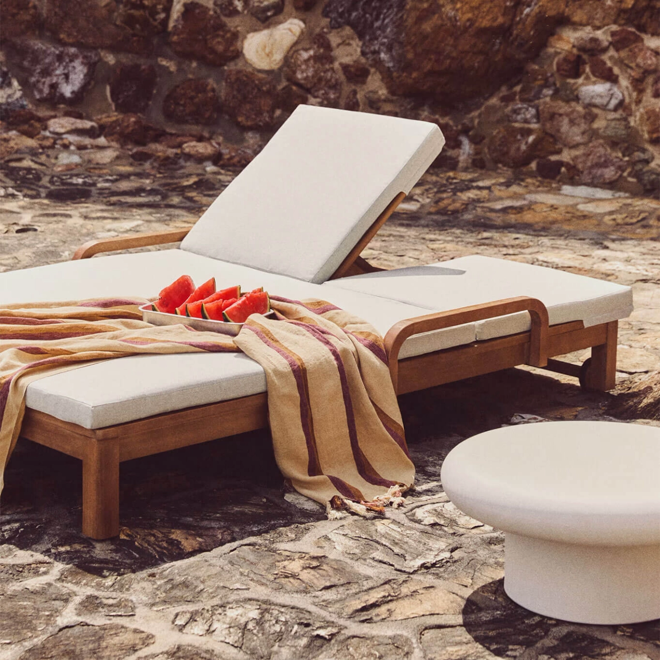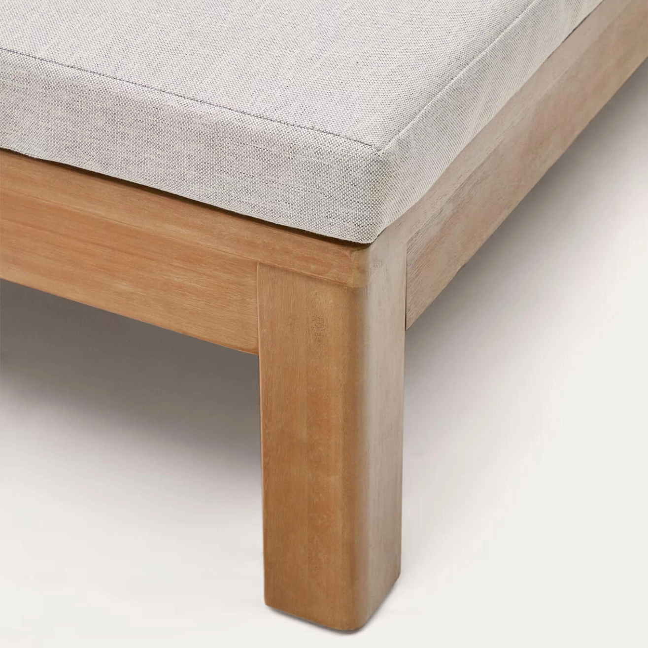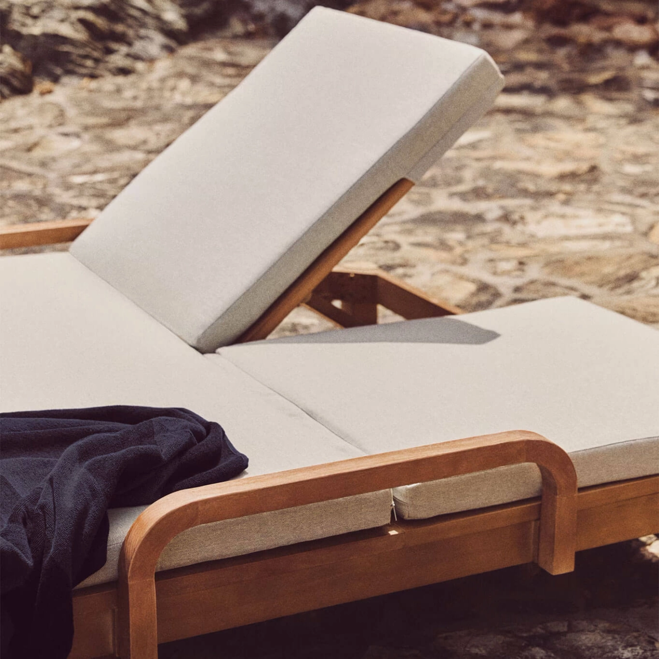 Sonsaura est un transat double en bois d’eucalyptus issu de la collection Kave Home. Chaque pièce de cette collection a été pensée pour profiter du plein air et se détendre, avec des lignes épurées et des matériaux résistants qui en font un choix parfait pour les terrasses et jardins. Le bois est certifié FSC™ 100 % provenant de forêts gérées durablement. Le transat dispose d’un dossier inclinable à 4 positions pour un confort personnalisé, de coussins déhoussables pour un entretien facile et de roues pour un déplacement aisé. Convient à un usage extérieur, il est recommandé de protéger les coussins en cas de pluie. Sonsaura allie confort, praticité et élégance pour vos moments de détente en extérieur.