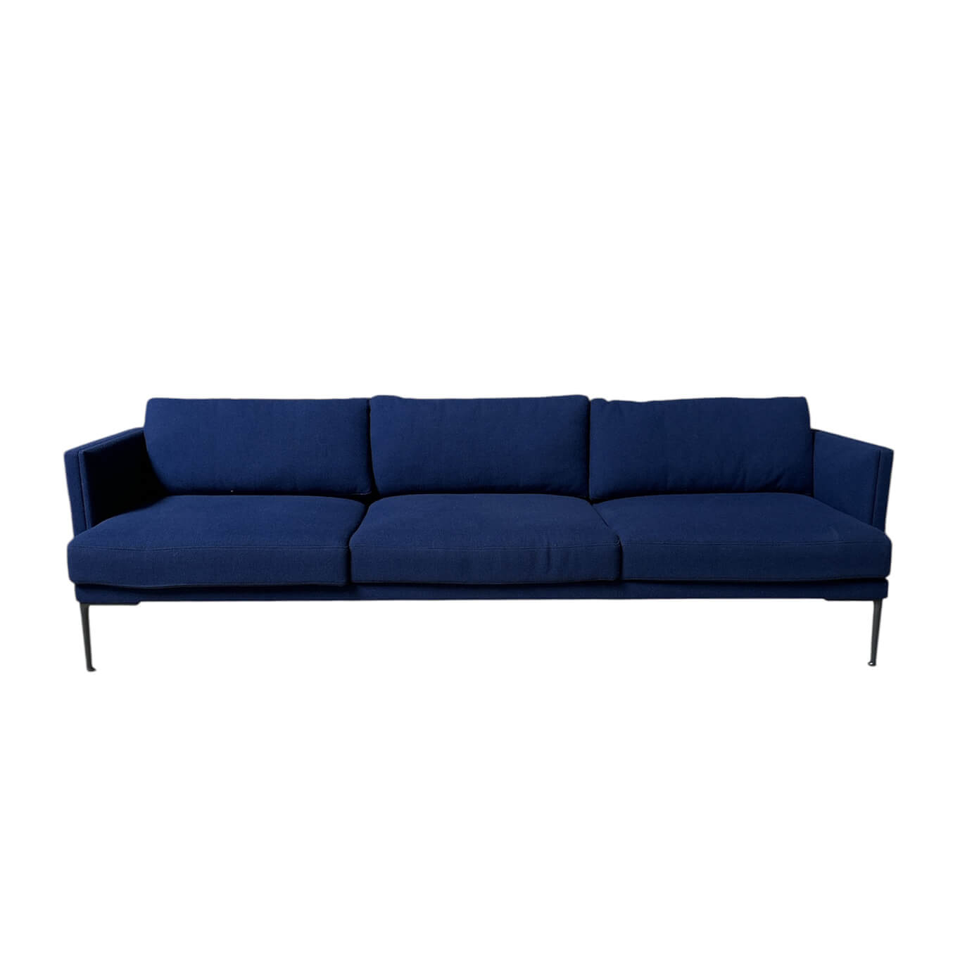 Le canapé d'occasion Steeve, imaginé par le designer français Jean-Marie Massaud pour Arper, incarne une esthétique sobre et raffinée. Conçu comme un système modulaire, il offre une grande liberté de composition grâce à ses différents éléments — bancs, fauteuils, modules d’angle, canapés 2 ou 3 places — permettant d’adapter la configuration à tout type d’espace, privé ou professionnel. Sa silhouette architecturale, aux lignes nettes et équilibrées, se distingue par l’absence de coutures apparentes sur les accoudoirs et les dossiers, accentuant l’unité visuelle et la pureté du design. Reposant sur une structure interne en acier avec des sangles élastiques pour un confort optimal, le canapé d'occasion Steeve est doté d’un rembourrage en mousse haute densité et de coussins amovibles, offrant un accueil généreux et durable. L’extérieur est entièrement revêtu de tissu. Le piètement en aluminium ou acier, discret et élancé, renforce l’impression de légèreté. Disponible dans un large choix de revêtements et de coloris, il se prête à de multiples personnalisations, avec des versions monochromes ou bicolores. Respectueux des principes d’écoconception, il est intégralement démontable pour faciliter le recyclage et la maintenance, et bénéficie de la certification GREENGUARD Gold pour ses faibles émissions. Alliant confort, modularité et élégance minimaliste, le canapé d'occasion Steeve de la marque Arper s’impose comme une pièce contemporaine pensée pour durer, aussi bien dans les intérieurs domestiques que dans les environnements professionnels exigeants.