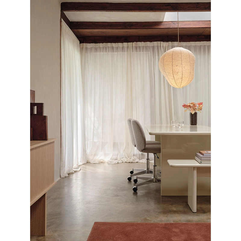 Éditée par Ferm Living, l'abat-jour Kurbis Ø 60 revisite la lanterne en papier de riz avec élégance et modernité. Fabriqué en papier Washi délicat, cet abat-jour s’inspire des courbes naturelles des courges et citrouilles, adoptant une silhouette organique et légèrement asymétrique. Cette forme unique confère à Kurbis Ø 60 un caractère distinctif qui se démarque des formes traditionnelles. Lorsque la lumière traverse le papier Washi, cet abat-jour Kurbis Ø 60 diffuse une lueur douce et apaisante, créant une ambiance chaleureuse et accueillante dans n’importe quelle pièce. Kurbis est disponible en trois tailles – 40, 60 et 80 cm de diamètre – pour s’adapter à différents espaces. Grâce à ces dimensions variées, il est possible de créer de superbes compositions lumineuses en associant plusieurs abat-jour de tailles différentes.