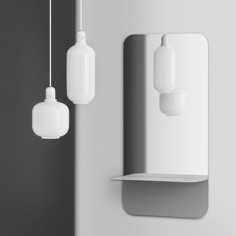 Pour Normann Copenhagen, le designer danois Simon Legald a conçu Amp, une gamme de lampes raffinées. L'idée de la forme de ces lampes est venue au designer un jour où il restaurait une vieille radio datant des années 1960. La forme ovale simple des lampes et la lumière qu'elles émettent y font ouvertement référence, tout comme le nom Amp, qui reprend l'abréviation du termes anglais « tube amplifier ». Le designer a voulu souligner visuellement les détails indispensables, comme par exemple la manière dont l'abat-jour repose sur le culot. Ces lampes de Normann Copenhagen sont dotées d'un câble textile assorti et la lampe de table possède un variateur d'intensité.