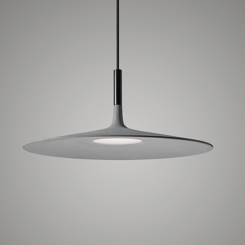 Aplomb est une collection de luminaires née de la volonté d’utiliser le ciment brut pour créer une suspension élégante. Editée par Foscarini, la collection de luminaires Aplomb met à l’honneur un ciment spécial obtenu à partir d’un mélange exclusif. Cette suspension présente un design léger, d’une grande élégance et avec des formes épurées, qui contrebalance la solidité massive du matériau, tout en exaltant la texture brute mais raffinée de ce matériau. Avec son design particulièrement ample et aplati, la suspension Aplomb Large présente un large rayon d’éclairage. Son design épuré lui permet de s’intégrer dans tous les styles d’espaces, domestiques ou collectifs. Aplomb est aussi disponible en version standard ou mini.