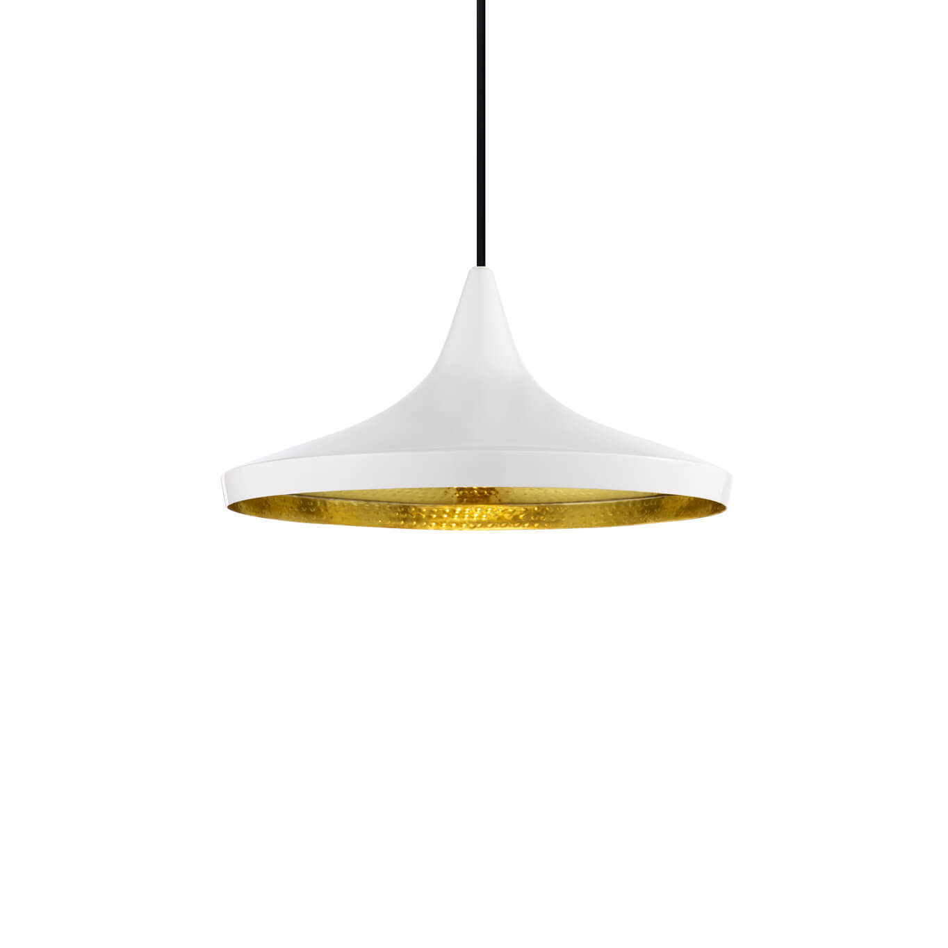 Beat light est une série de luminaires, dessinée par Tom Dixon, inspirée par la simplicité sculpturale des marmites de cuivre et des traditionnels vases indiens. Les pièces de laiton sont martelées à la main selon des techniques traditionnelles. L'extérieur du diffuseur est lisse contrastant avec les reliefs à l'intérieur. Les propriétés de réflexion du laiton permettent une diffusion efficace de la lumière. Déclinée en plusieurs couleurs, la collection Beat light est disponible dans les versions tall, fat, wide et stout qui peuvent être associées dans une composition de suspensions.