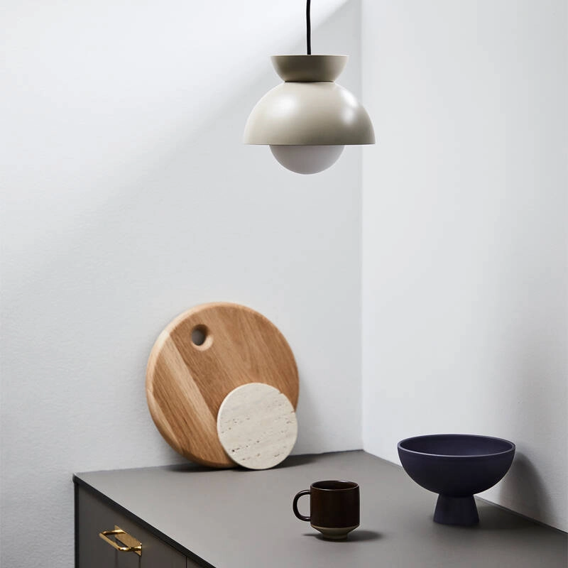 Editée par Frandsen, Butterfly se compose de trois demi-dômes superposés. Les formes sphériques des demi-dômes créent une interaction entre les lignes rondes de la lampe. Le dôme supérieur est doté de trous discrets qui permettent à la lumière douce de se propager vers le haut, tandis que la surface sombre du dôme inférieur diffuse une lumière douce atmosphérique et évocatrice, faisant de Butterfly un éclairage idéal pour une variété d'environnements. La lampe Butterfly Frandsen se décline dans différentes couleurs, toutes inspirées de matériaux naturels, tels que les feuilles des arbres et les roseaux au bord d'un lac. Les couleurs sont mates, ce qui donne aux suspensions un aspect doux et accueillant.