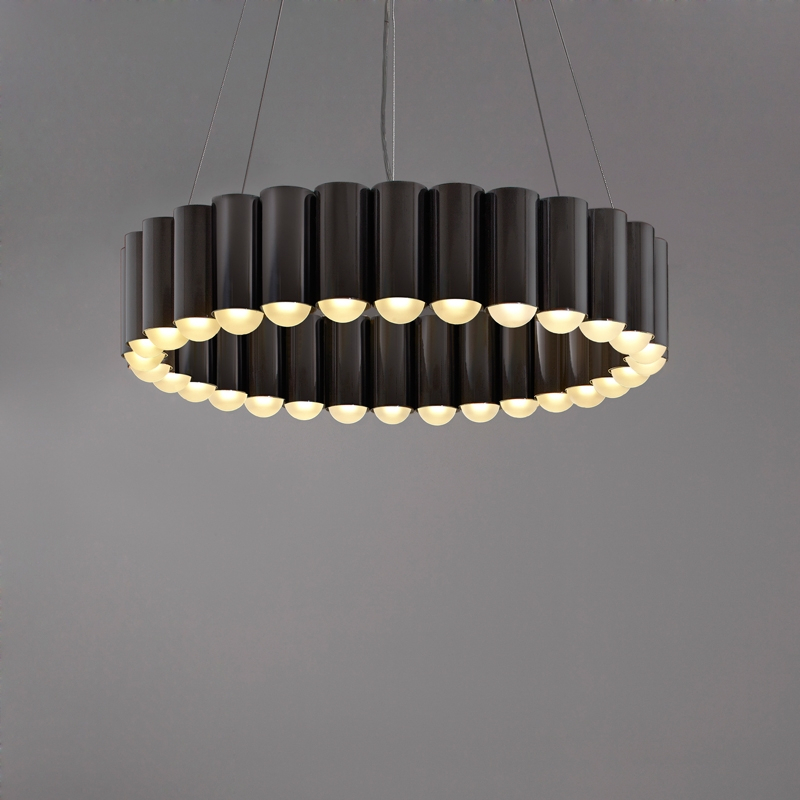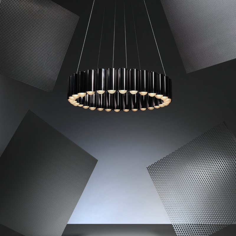 Créée par le designer Lee Broom, cette suspension a été inspirée par le manège d'une fête foraine traditionnelle britannique. Chaque cylindre qui compose le luminaire accueille une ampoule LED, créant un anneau de lumière spectaculaire. Disponible en version bronze, or, chrome ou noir mat, Carousel est suspendu par un des fils en acier et un câble transparent. A la fois légère et imposante, cette sculpture lumineuse flotte élégamment dans l'espace.