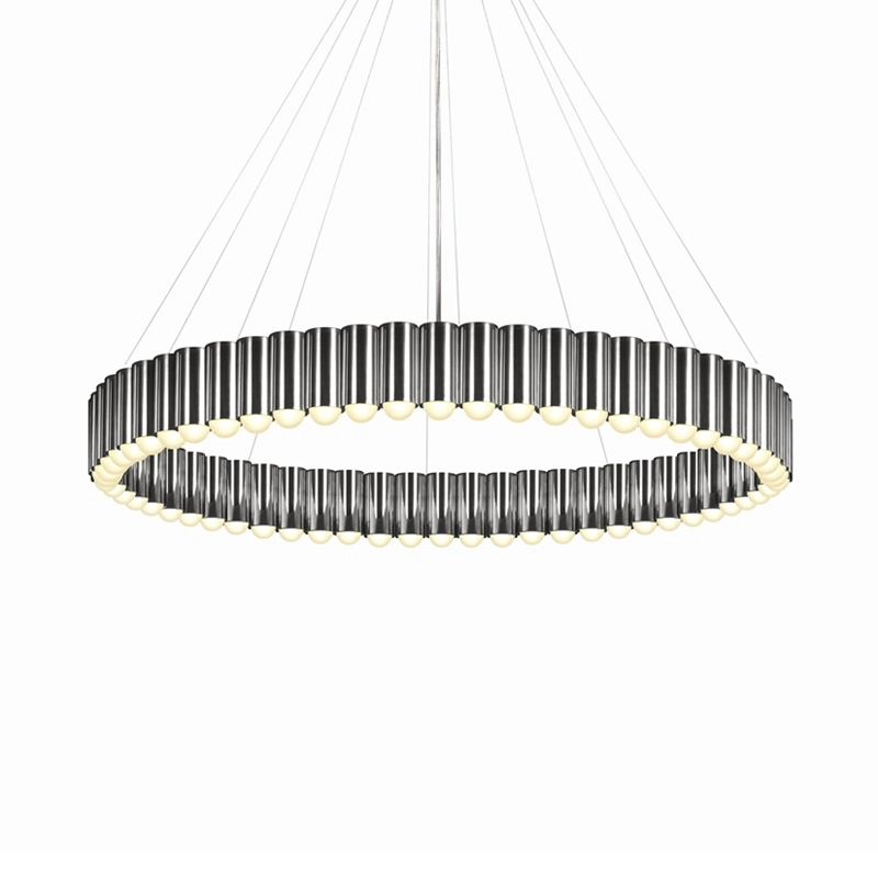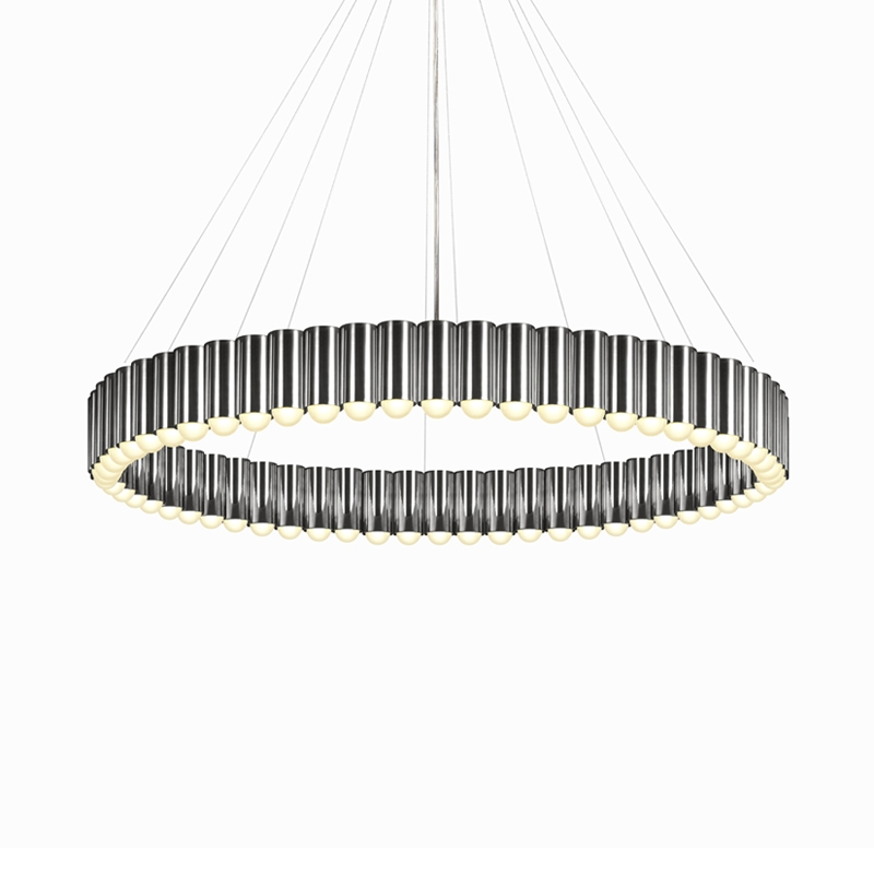 Créée par le designer Lee Broom, cette suspension a été inspirée par le manège d'une fête foraine traditionnelle britannique. Chaque cylindre qui compose le luminaire accueille une ampoule LED, créant un anneau de lumière spectaculaire. Disponible en version bronze, or, chrome ou noir mat, Carousel est suspendu par un des fils en acier et un câble transparent. A la fois légère et imposante, cette sculpture lumineuse flotte élégamment dans l'espace.