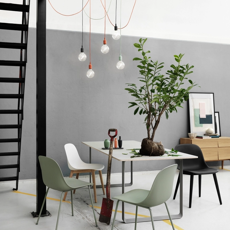 E27 est une suspension créée par Mattias Stahlbom. Le designer met l'ampoule à nue montrant la beauté pure de cette lampe de 12,5cm de diamètre. Le cordon électrique, se faisant discret habituellement, est ici mis en avant. Editée par Muuto, l'ampoule E27 se décline en un large choix de couleurs : rouge, jaune, bleu, gris, violet, noir, dans les couleurs pastel du printemps : rose, vert clair et gris clair. E27 est désormais disponible en orange. Dans le cas d'une commande de plusieurs suspensions, il est fortement recommandé de commander également la rosace multiple adaptée.