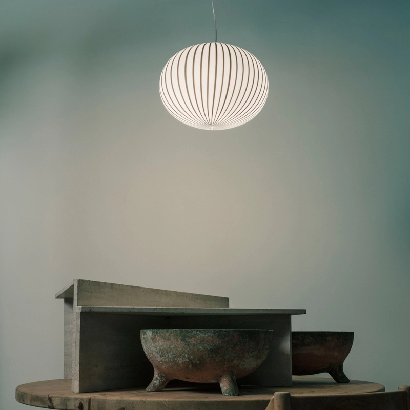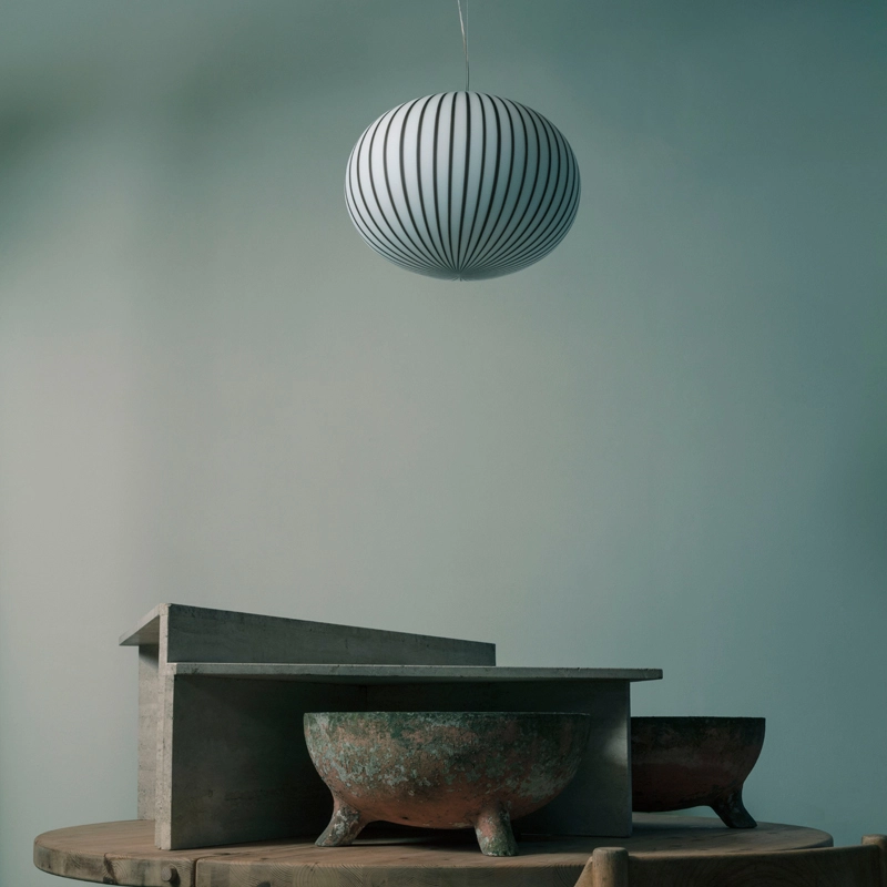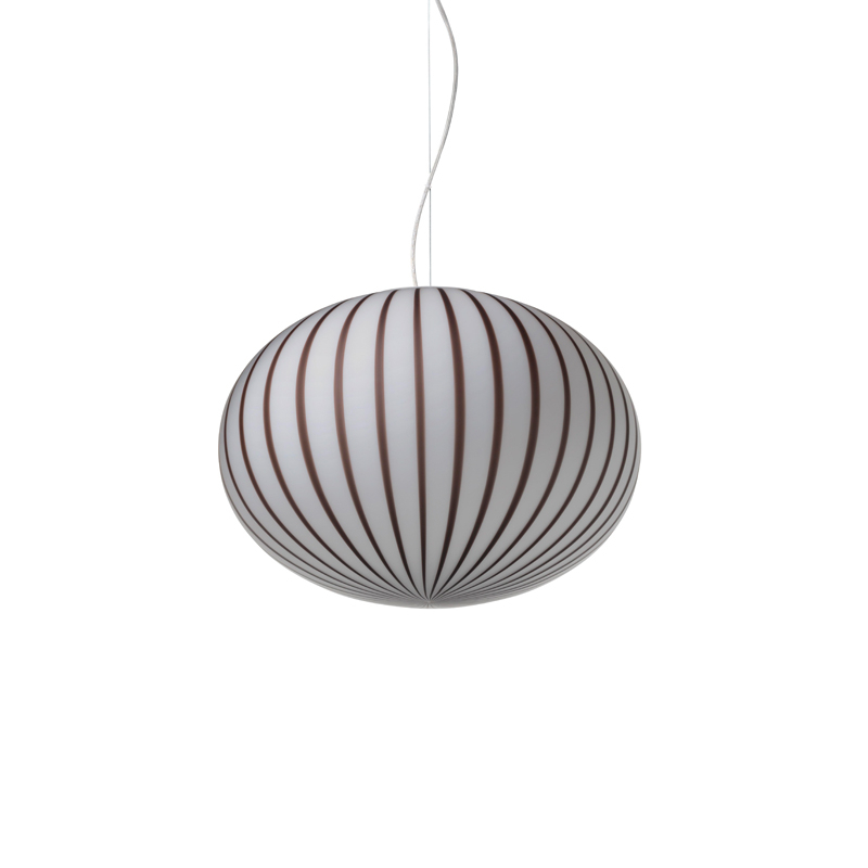 Dessinée par Sebastian Wrong pour Established & Sons, la collection de luminaires Filigrana exploite la maitrise et l’héritage du verre soufflé vénitien traditionnel. Cette série fusionne une technique du 16ème siècle venant de Murano avec une esthétique moderne, pour créer un luminaire hypnotisant, dont les rayures font penser à un sucre d’orge. Chaque luminaire Filigrana est unique, grâce au procédé artisanal utilisé. Le verre est soufflé à la bouche par des artisans hautement qualifiés. Disponible dans de nombreuses dimensions et plusieurs couleurs, Filigrana émet une lumière douce et diffuse. Introduite pour la première fois en 2018, cette lampe reconnaissable instantanément apporte une touche joyeuse et graphique dans tous types d’espaces. La suspension Filigrana peut être utilisée seule ou en composition de plusieurs éléments pour créer des combinaisons uniques.