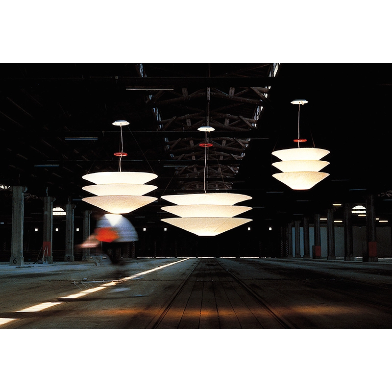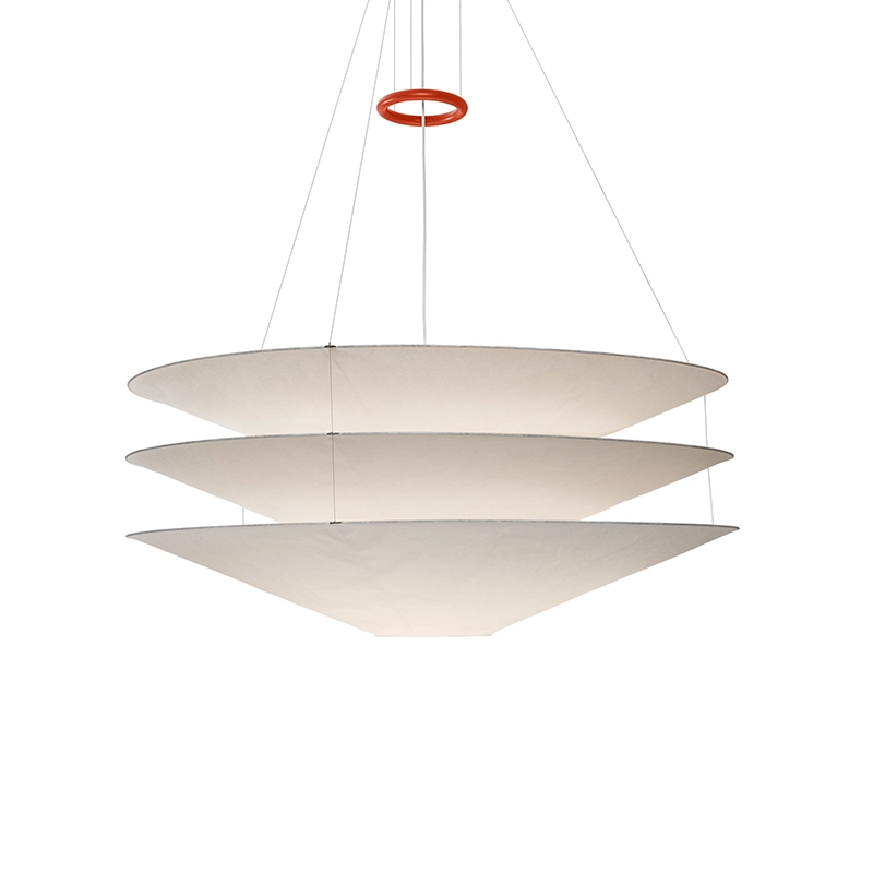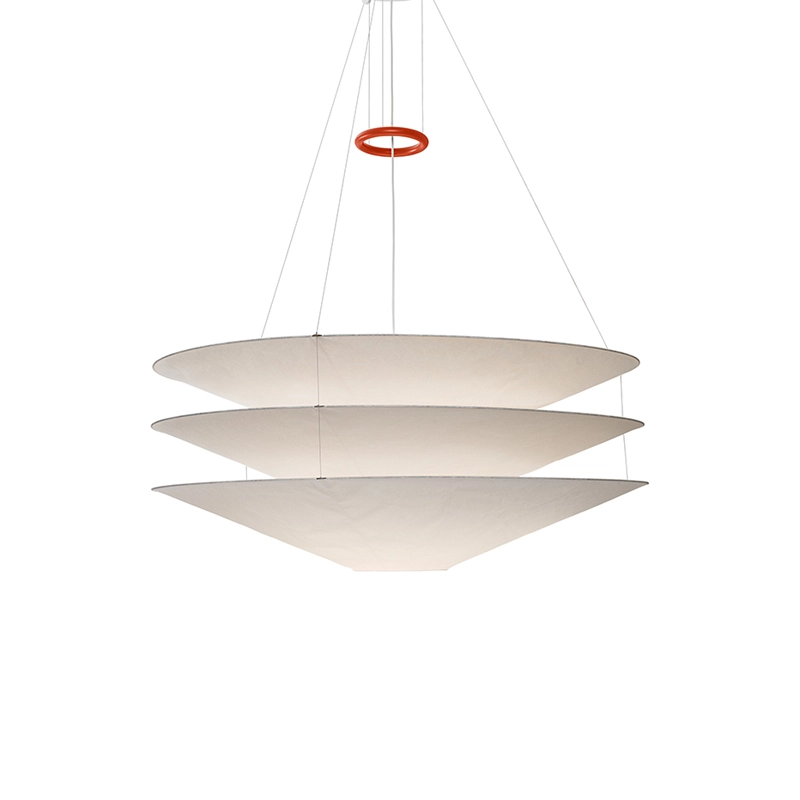 La suspension Floatation d’Ingo Maurer allie élégance et sobriété. Elle est fabriquée à partir de papier japonais et de métal et dispose d'un anneau rouge en fer qui permet de régler la hauteur de la suspension. Parfaite pour apporter à la fois de la lumière et une touche sculpturale dans une pièce, elle est disponible en trois dimensions : 75 cm, 100 cm et 120 cm. La suspension Floatation d'Ingo Maurer est donc parfaite si vous cherchez une source de lumière à la fois douce et efficace pour illuminer votre intérieur.