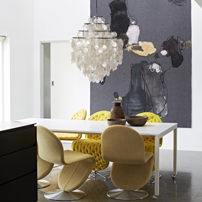 Beaucoup considèrent la collection Fun comme l'un des plus grands chefs-d'œuvre de Verner Panton dans le domaine de la conception d'éclairage. Depuis 1964, cette suspension suscite la joie et une richesse d'histoires. Composée de dizaines de disques coquillage, suspendus à une structure métallique à 4 anneaux, le suspension Fun 0DM Verpan saura illuminer avec élégance votre intérieur.