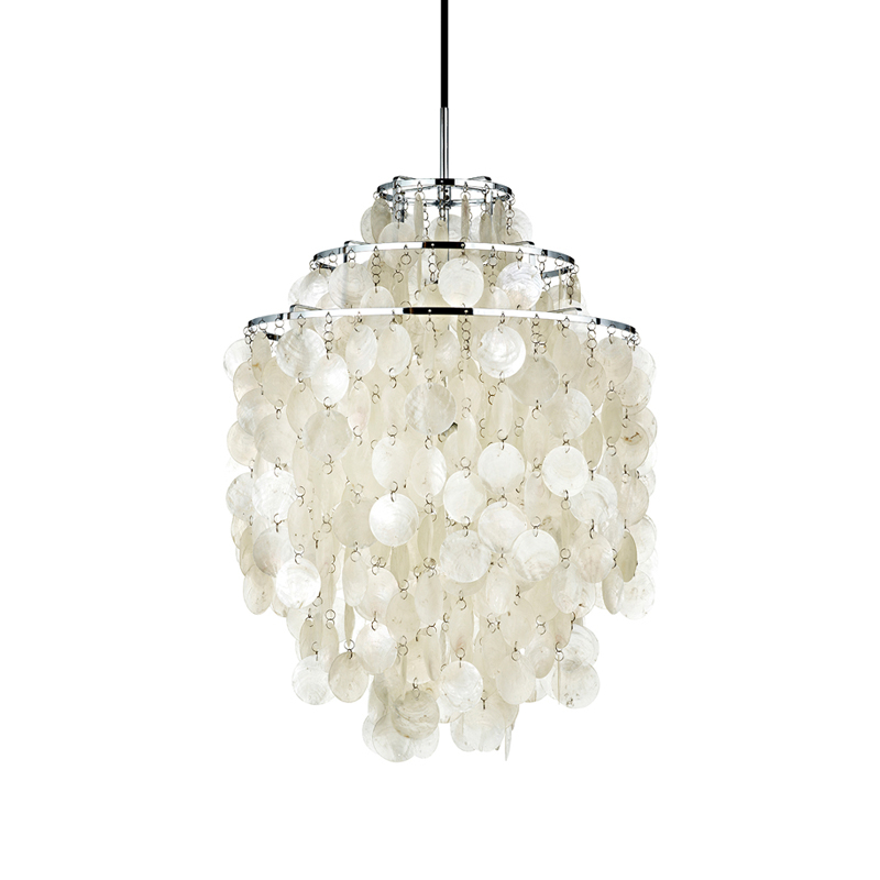 Beaucoup considèrent la collection Fun comme l'un des plus grands chefs-d'œuvre de Verner Panton dans le domaine de la conception d'éclairage. Depuis 1964, cette suspension suscite la joie et une richesse d'histoires. Composée de dizaines de disques coquillage, suspendus à une structure métallique à 3 anneaux, le suspension Fun 1DM Verpan saura illuminer avec élégance votre intérieur.