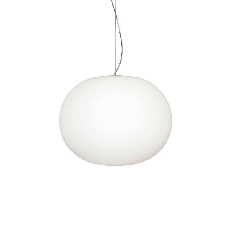 La suspension Glo-Ball S2, conçue par Jasper Morrison pour la marque Flos, comprend un diffuseur en verre opalin gainé, soufflé artisanalement, et acidifié, ainsi qu'un diffuseur en polycarbonate transparent. Son support de diffuseur est en polycarbonate transparent moulé par injection, avec une rosace en polyamide contenant 30 % de fibre de verre et une attache plafond en acier zingué. La lampe contient également un câble de suspension en acier. Très élégante et unique elle apportera de la chaleur et une ambiance cosy à votre pièce. La lampe en suspension Glo-Ball S2 au design minimaliste et discret s’intégrera aussi bien à un intérieur classique que moderne.