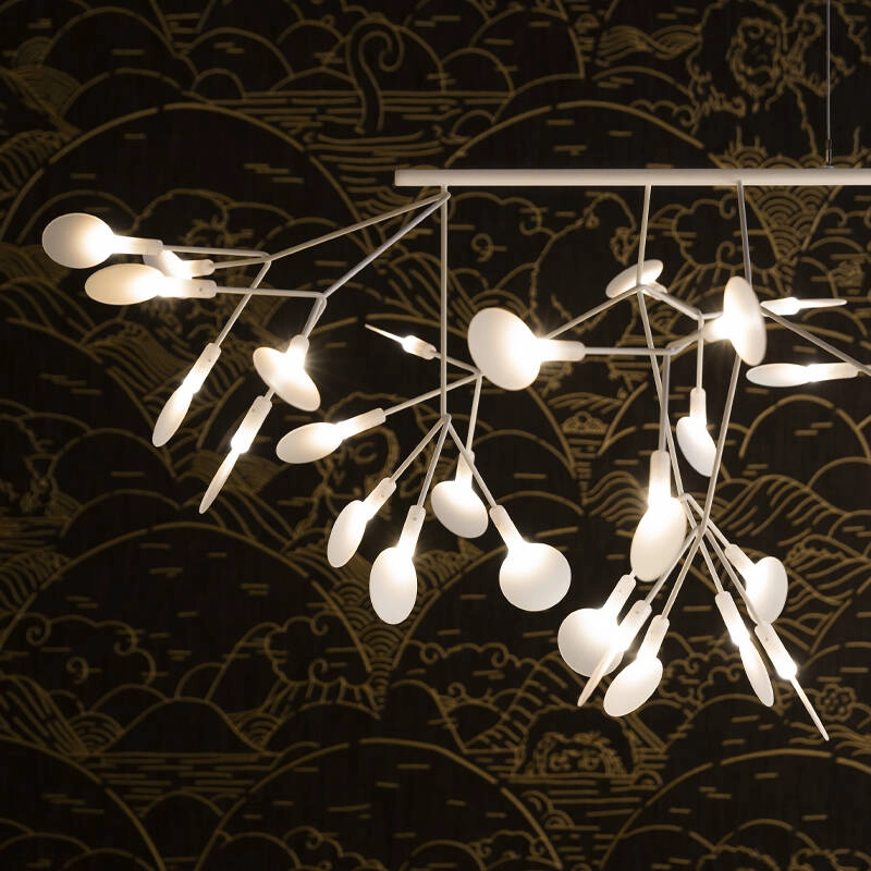 La collection Heracleum III de MOOOI, créée par le designer Bertjan Pot permet la rencontre de la nature avec la technologie. Le nom et la fine silhouette de ces luminaires est inspiré de la plante à fleurs du même nom. Les ramifications d’Heracleum III éclosent en une floraison d’ampoules LEDS blanches, créant une structure très technique et naturelle. Chaque branche du luminaire est obtenue grâce à une technique de revêtement de couches conductrices appelée Electrosandwich, innovation du studio Marcel Wanders. Heracleum III propose un éclairage puissant et chaleureux ; son esthétique florale très élaborée apporte une touche d’élégance à tous les intérieurs.