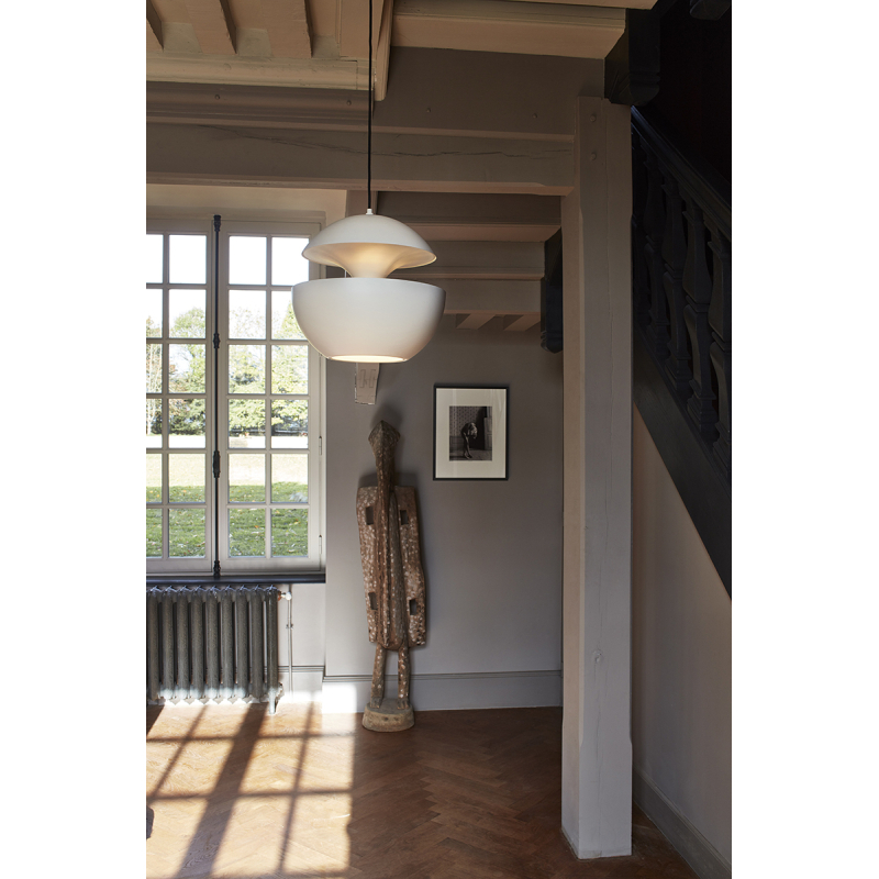 Inspirée par le soleil couchant, cette suspension en aluminium peut être disposée seule ou en grappe, et se décline en plusieurs formats et coloris. Editée par DCW éditions, la suspension originale Here Come the sun 450 ressemble à première vue à toutes les lampes dites, elles aussi, originales. Mais lorsqu'elle est allumée, la suspension Here Comes the Sun devient magique. Avec Here Comes the Sun, la nuit devient douce et rassurante.
