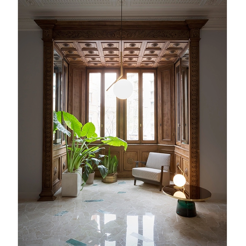 Avec la collection de luminaires IC, le designer Michael Anastassiades explore les lois de l'équilibre. Déclinée en plusieurs modèles, la suspension est composée d'une sphère en verre soufflé qui semble être juste en équilibre sur une fine tige de métal. Editée par Flos, cette série sculpturale joue sur les contrastes de formes et de matières pour créer des pièces à la balance parfaite, qui donnent une étonnante sensation de calme et de sérénité. Semblant défier la gravité, ces lampes à la lumière diffuse amènent une touche d'élégance dans votre intérieur.