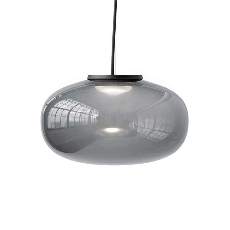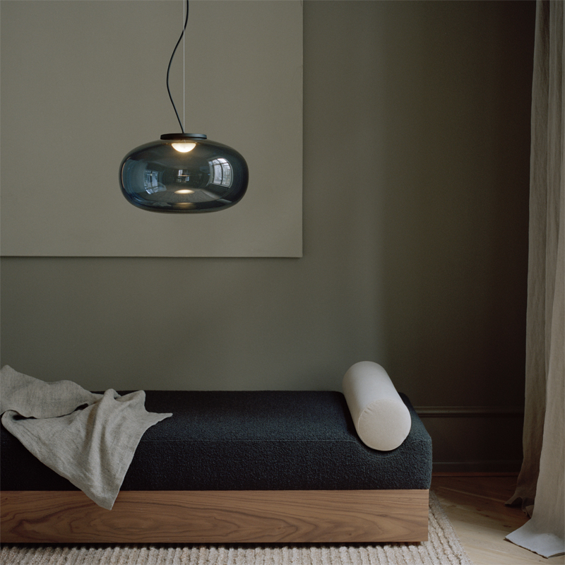 La suspension Karl-Johan reprend la silhouette douce mais distincte de la collection dessinée par Signe Hytte. Les combinaisons de matériaux de la lampe de table et de l'applique ont été supprimées, permettant à la forme arrondie du verre de briller davantage. Une source lumineuse LED compacte fait rebondir la lumière à l'intérieur des globes, créant un volume sans interférence visuelle. Edité par New Works, le dernier membre de la famille Karl-Johan possède tous les ingrédients nécessaires, et rien de plus.
