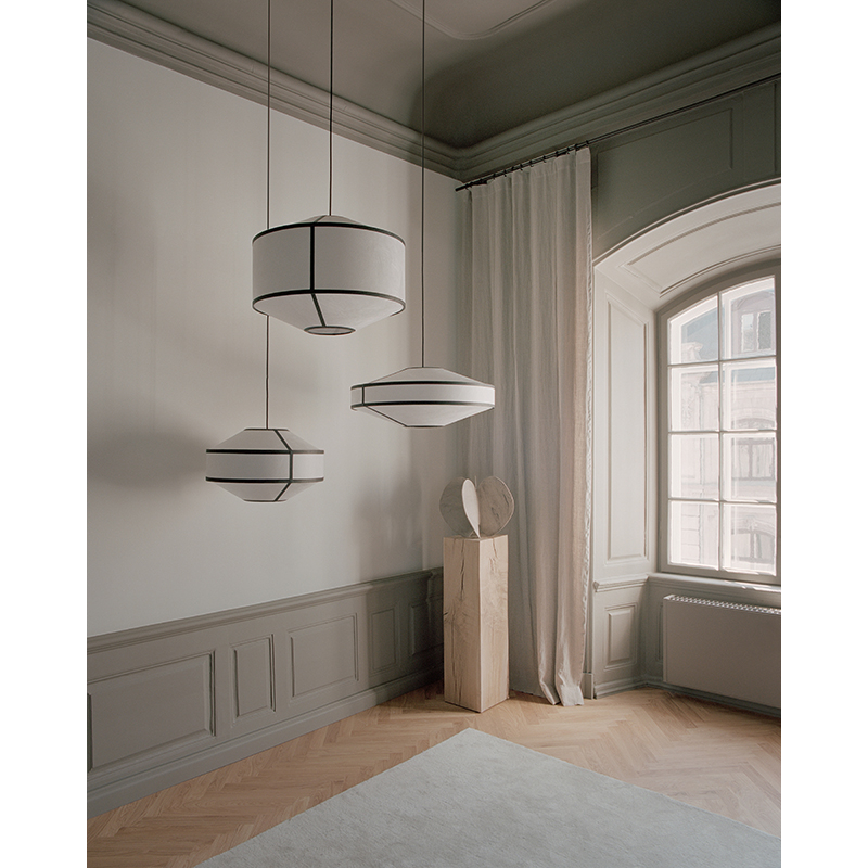 Editée par New Works, Kite est une collection de luminaires mêlant des silhouettes pures et géométriques à une matérialité lisse et texturée. Les mêmes éléments structurels se déclinent en trois tailles différentes, chacune faisant écho à l'autre. De délicats rubans, disponible en noir ou en blanc, dessinent les contours des silhouettes, un raffinement technique qui enrichit la profondeur et les contrastes. Les suspensions Kite de New Works peuvent être utilisés seules ou en composition de plusieurs éléments pour créer une sculpture lumineuse unique et personnelle.