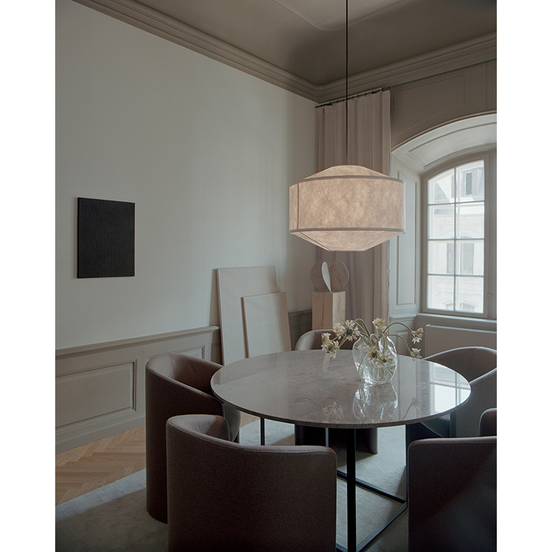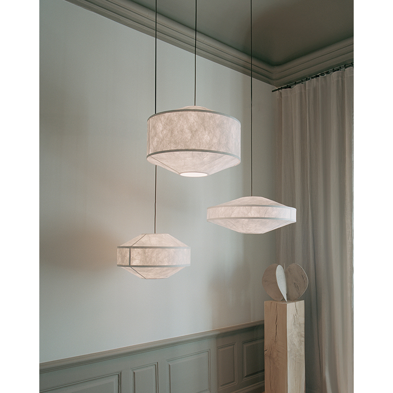 Editée par New Works, Kite est une collection de luminaires mêlant des silhouettes pures et géométriques à une matérialité lisse et texturée. Les mêmes éléments structurels se déclinent en trois tailles différentes, chacune faisant écho à l'autre. De délicats rubans, disponible en noir ou en blanc, dessinent les contours des silhouettes, un raffinement technique qui enrichit la profondeur et les contrastes. Les suspensions Kite de New Works peuvent être utilisés seules ou en composition de plusieurs éléments pour créer une sculpture lumineuse unique et personnelle.