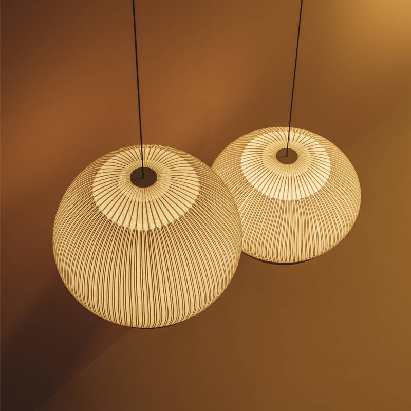 La collection Knit est disponible dans les versions lampe à poser et suspension.