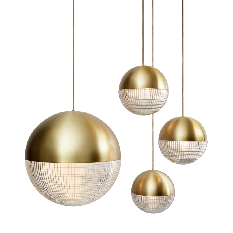 La dernière née, Little Lens Flair de Lee Broom, est une adaptation de la collection Lens Flair. Inspiré par les lentilles télescopiques et l'art des réfractions horizontales et verticales, Little Lens Flair est un assemblage de deux demi-sphères, combinant de façon homogène le solide et le transparent. Le diffuseur en polycarbonate transparent quadrillé émet une douce lumière diffuse. Il est juxtaposé à une demi-sphère opaque en acier finition laiton brossé ou noir mat, qui crée un contraste net. Cette pièce magnifique est disponible sous forme de suspension, lampe de table et lustre.