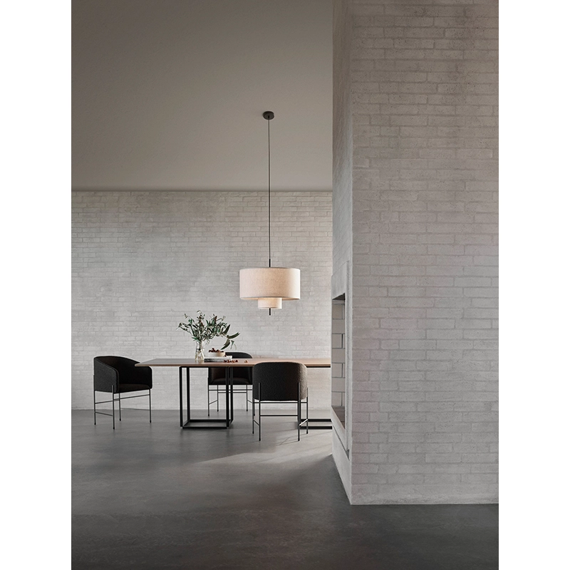 Conçue par le designer John Asbury pour New Works, la famille de suspensions Margin représente une interprétation moderne d'un luminaire classique. Margin se distingue par ses abat-jours superposés qui diffusent délicatement la lumière, créant ainsi instantanément une atmosphère chaleureuse et accueillante. La douceur du tissu est équilibrée par le design épuré et graphique de la suspension Margin, conférant ainsi une présence et un volume à l'espace. Les proportions réfléchies, les détails soignés et la structure en forme de gradins de la lampe contribuent à affiner l'esthétique originale caractéristique de la famille de suspensions Margin de New Works. La suspension Margin se décline en trois dimensions : 50, 70 et 90 centimètres de diamètre.