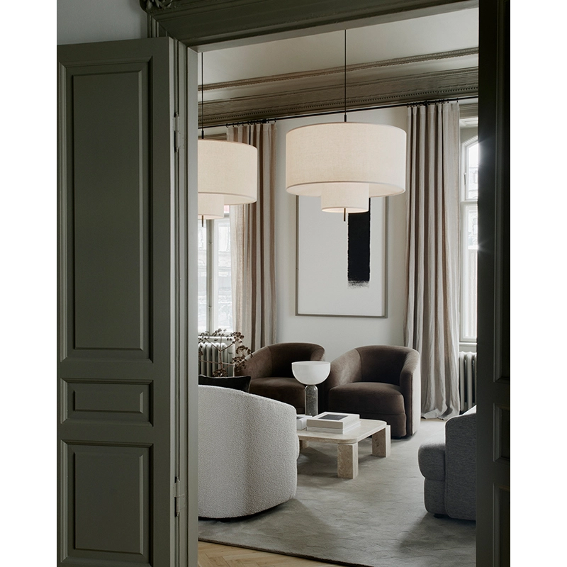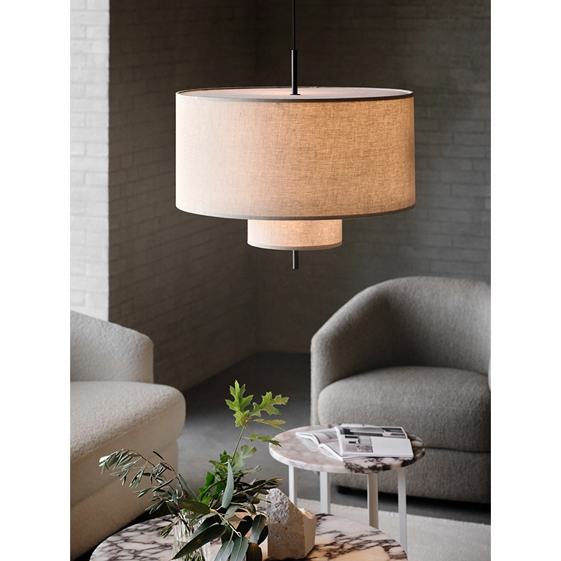 Conçue par le designer John Asbury pour New Works, la famille de suspensions Margin représente une interprétation moderne d'un luminaire classique. Margin se distingue par ses abat-jours superposés qui diffusent délicatement la lumière, créant ainsi instantanément une atmosphère chaleureuse et accueillante. La douceur du tissu est équilibrée par le design épuré et graphique de la suspension Margin, conférant ainsi une présence et un volume à l'espace. Les proportions réfléchies, les détails soignés et la structure en forme de gradins de la lampe contribuent à affiner l'esthétique originale caractéristique de la famille de suspensions Margin de New Works. La suspension Margin se décline en trois dimensions : 50, 70 et 90 centimètres de diamètre.