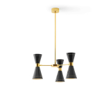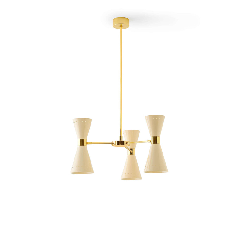 Megafono de Stilnovo est une suspension emblématique des années 1950 dotée d'une lumière directe et indirecte. L'abat-jour à double cône réglable de la suspension Megafono éditée par Stilnovo est associé à une tige en laiton précieux à dorure galvanique, pour éclairer avec une touche raffinée. La suspension Megafono est disponible en version 3, 6 ou 8 branches.
