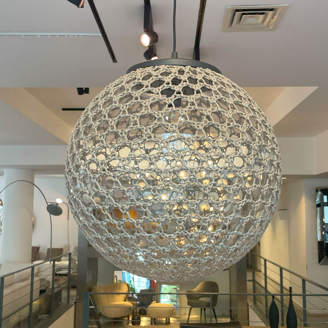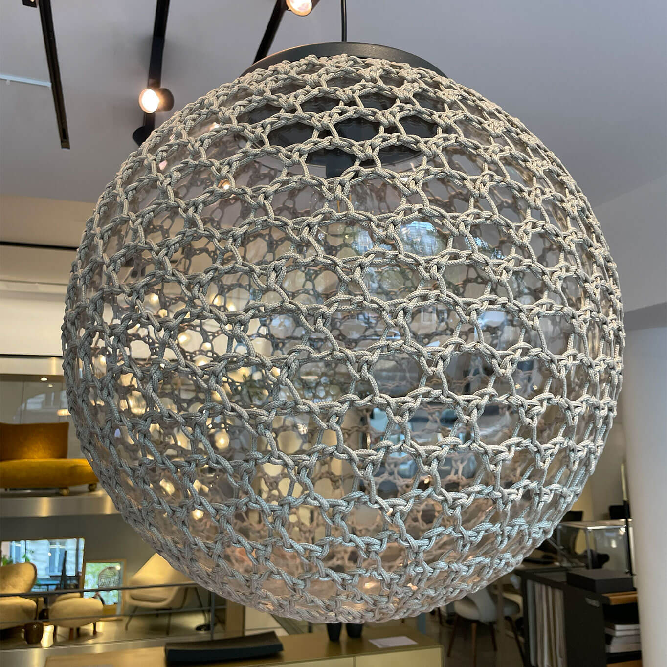 Monsieur Lebonnet fait partie de la collection Monsieur Tricot, une gamme d'éclairages pour l'extérieur éditée par Tribu, tricotés et crochetés à la main pour transformer votre terrasse et jardin en un lieu féérique à la nuit tombée. Les suspensions conçues par le designer belge Ilia Eckardt, allient techniques traditionnelles, matériaux performants et technologie moderne. Eckardt a mis au point sa première collection d'éclairage extérieur tricoté, conçue comme une famille. Faites ainsi connaissance avec la séduisante suspension Monsieur Lebonnet d'occasion, déclinée en trois tailles différentes.