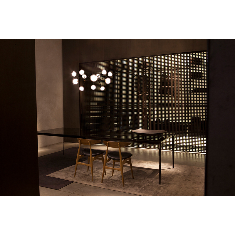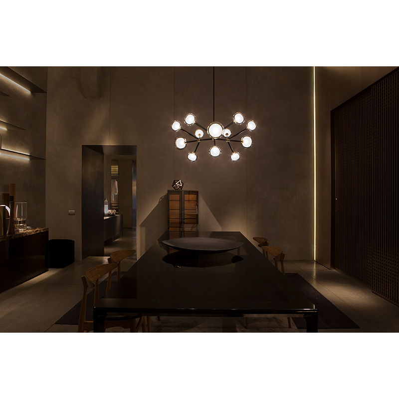 S'inspirant du design des luminaires des années 50, les luminaires de la collection Nabila de Tooy incarnent l'élégance et la sophistication, apportant une touche de raffinement à n'importe quel espace. La suspension Nabila 552.12 se distingue par ses globes lumineux en verre borosilicate à double paroi, disponibles dans diverses configurations, ainsi que par sa structure métallique revêtue de poudre époxy, agrémentée de détails en laiton brossé. Alliant le luxe à la sobriété, la suspension Nabila 552.12 incarne une véritable élégance en un seul élément. Avec Nabila, Tooy propose une large gamme de luminaires allant des somptueux lustres disponibles en tailles différentes aux versions plus petites conçues pour les tables de nuit, les lampadaires et les appliques murales.