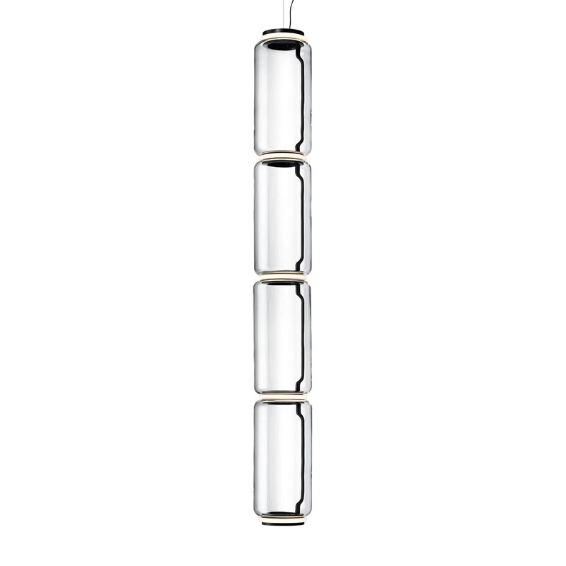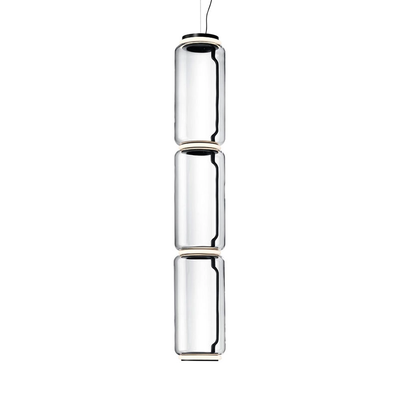 Flos sont constituées d’un empilement de modules transparents, fabriqués artisanalement en verre soufflé. Les modules sont maintenus par une structure interne en métal laqué noir. Les formes géométriques se superposent donnant naissance à des constructions sculpturales qui offrent un équilibre extraordinaire entre les proportions et l’élégance des matériaux.