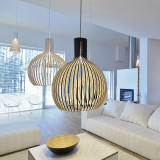 La collection de luminaires de l'éditeur Secto Design, est dessinée par l'architecte d'intérieur finlandais Seppo Koho. La société de design fondée depuis 1995 est spécialisée dans la fabrication de luminaires en bois. Les diffuseurs sont réalisés à partir de lattes de bouleau, connectées par des anneaux de « aircraft plywood », un bois utilisé dans l'aéronautique. Chaque modèle de la collection est disponible en bouleau naturel, laminé blanc ou noir. Les luminaires de Secto Design sont tous réalisés à la main par des artisans finlandais hautement qualifiés. Les suspensions et appliques Secto présentent des formes triangulaires étirées sur la hauteur tandis que la suspension Octo prend une forme plus arrondie telle une sphère suspendue. Quelque soit le modèle choisi, ces luminaires sont d'une élégance parfaite et apporte chaleur et naturel dans votre intérieur grâce au matériau.