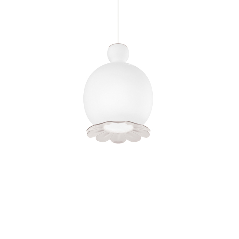 La suspension Opyo a été conçue par Cristina Celestino pour la marque Kundalini.  Les lignes délicates et nettes de la cosse de pavot ont inspiré le diffuseur en verre opalin de ce luminaire élégant. Opyo est suspendu grâce à une longue tige, tout comme une fleur. Cette suspension apporte aux espaces intérieurs l'harmonie mystérieuse du monde botanique.